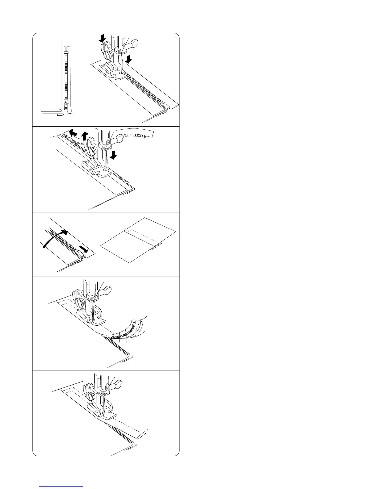 garment and zipper tape. Stop about 5 cm (2”) from the