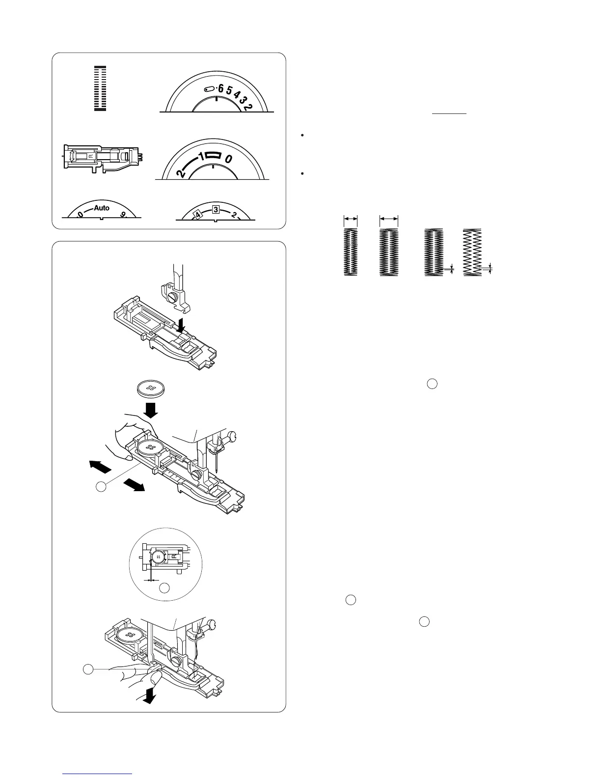 longer stitch length (1) for heavier fabrics. Remain