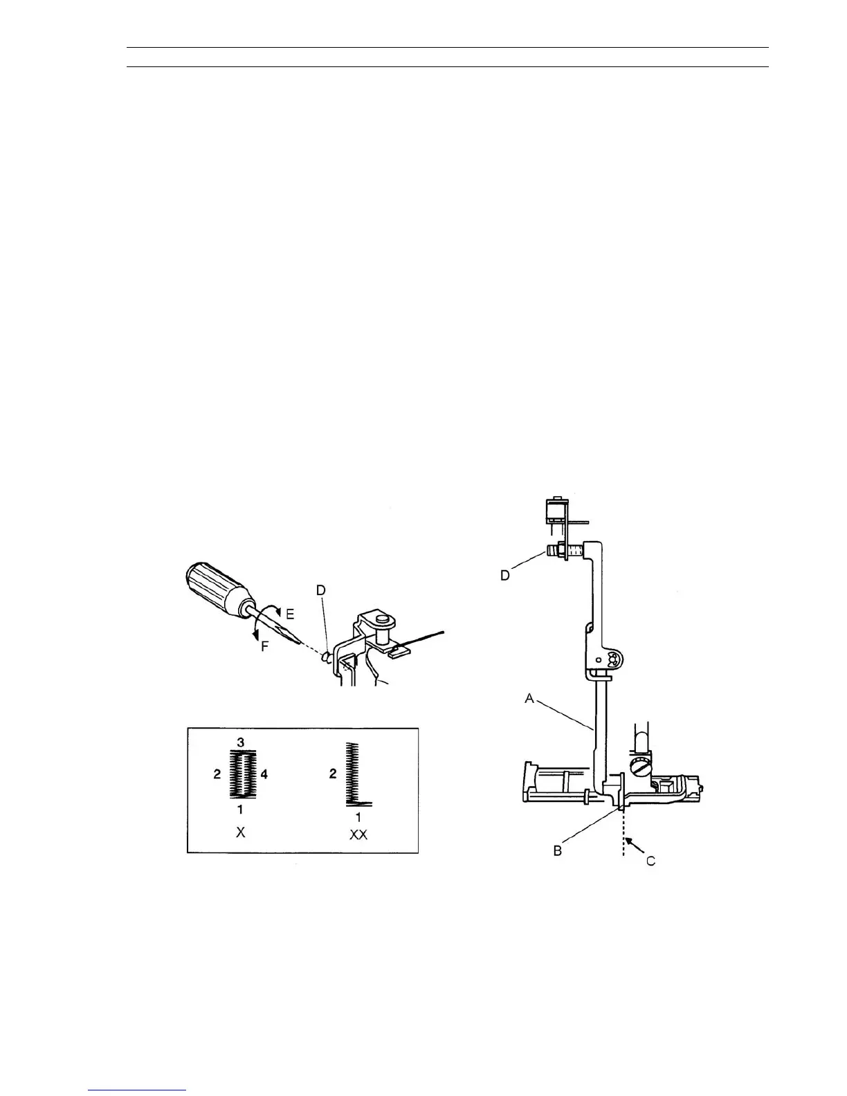 3. If the buttonhole length is shorter then the button: Turn the adjusting screw D in the direction of