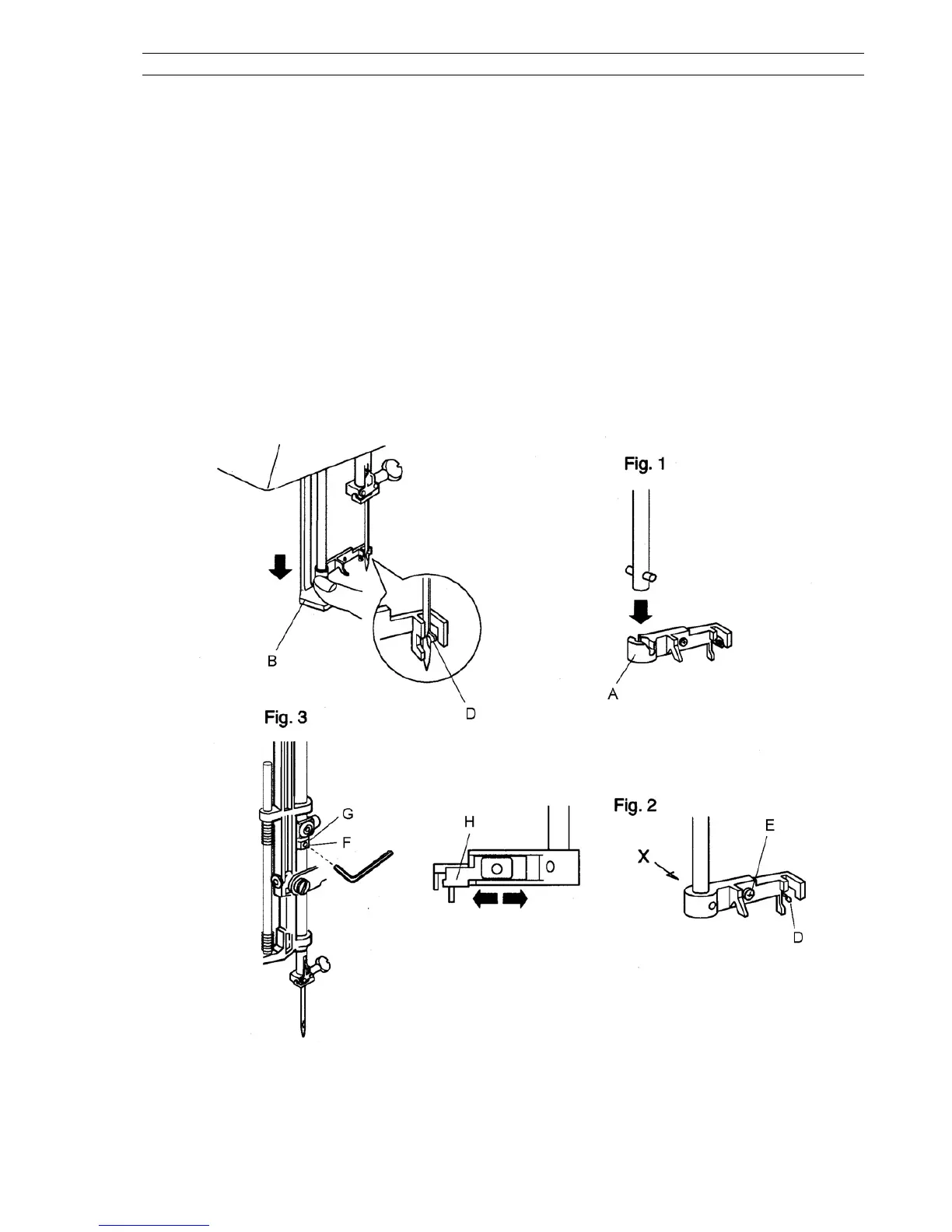 needle eye: Remove the face cover and loosen the setscrew (F). Move the threader position