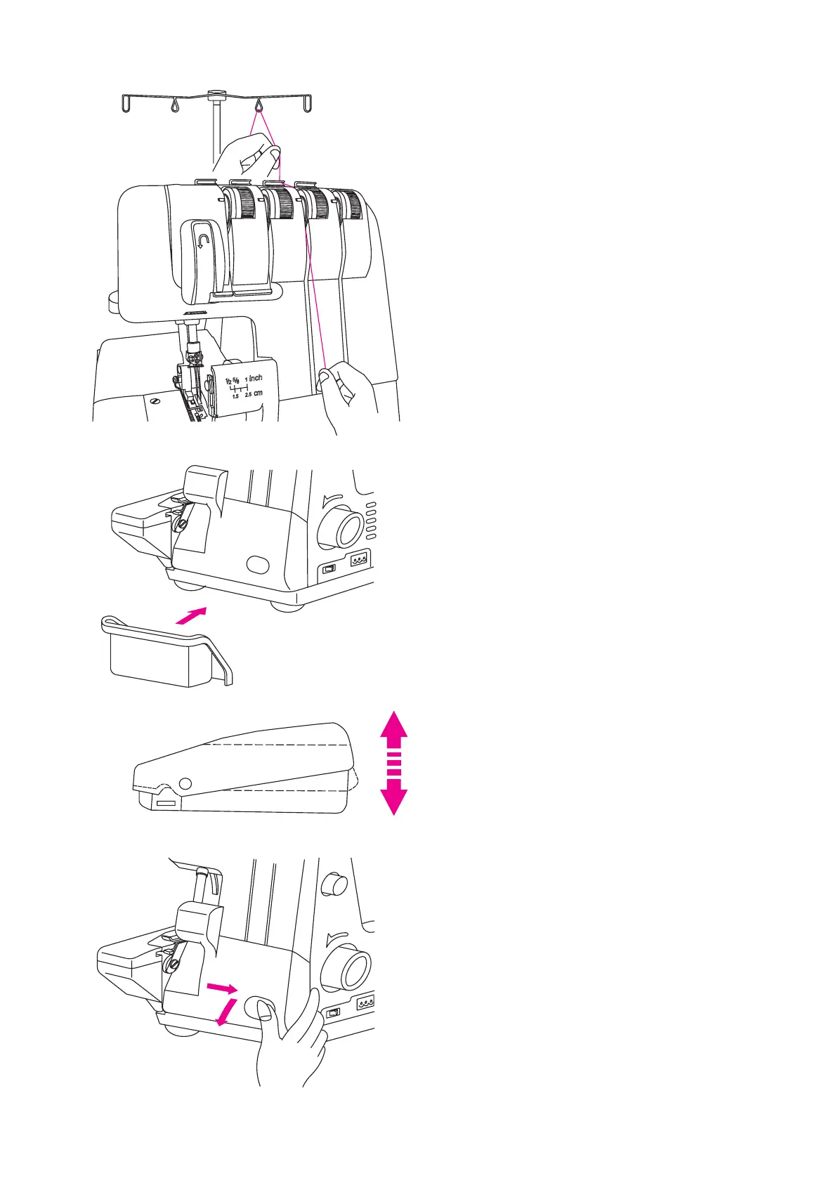 into the tension discs, thread the machine and