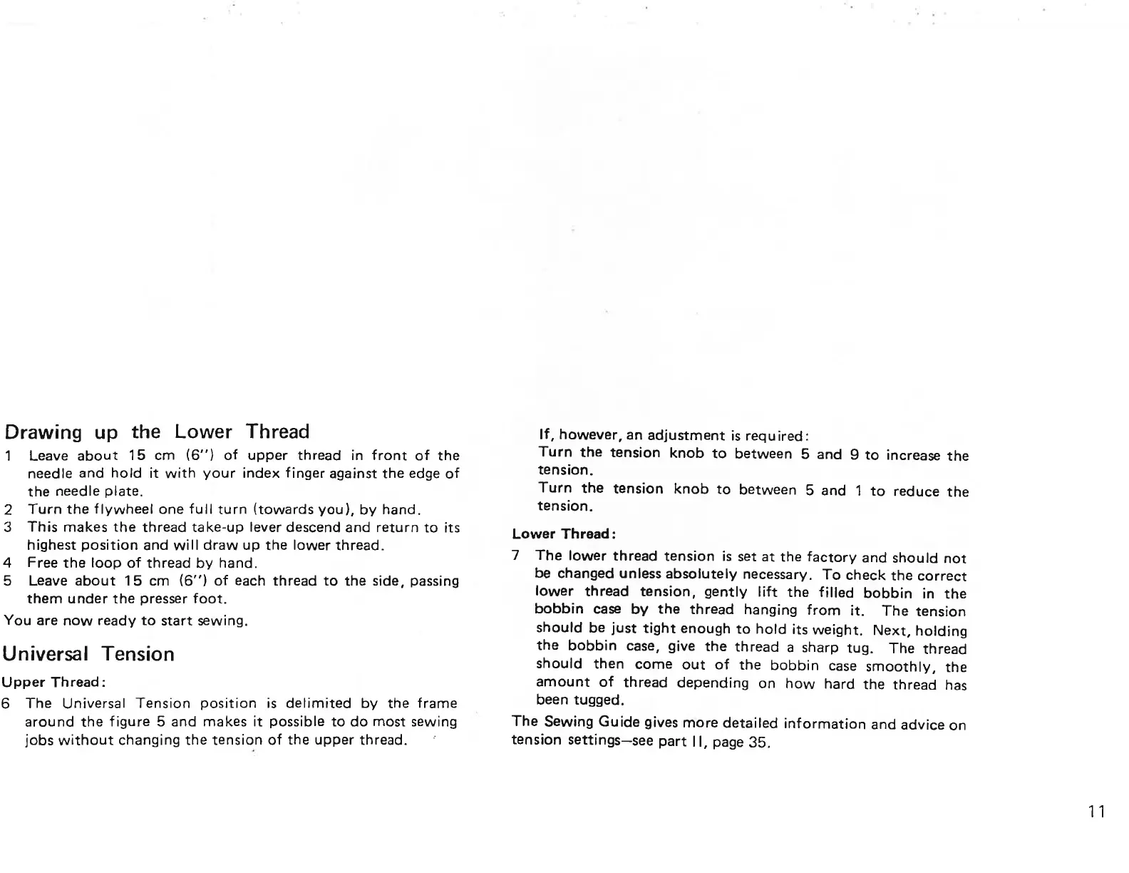 changing the tension of the upper thread. tension settings—see part II, page 35.