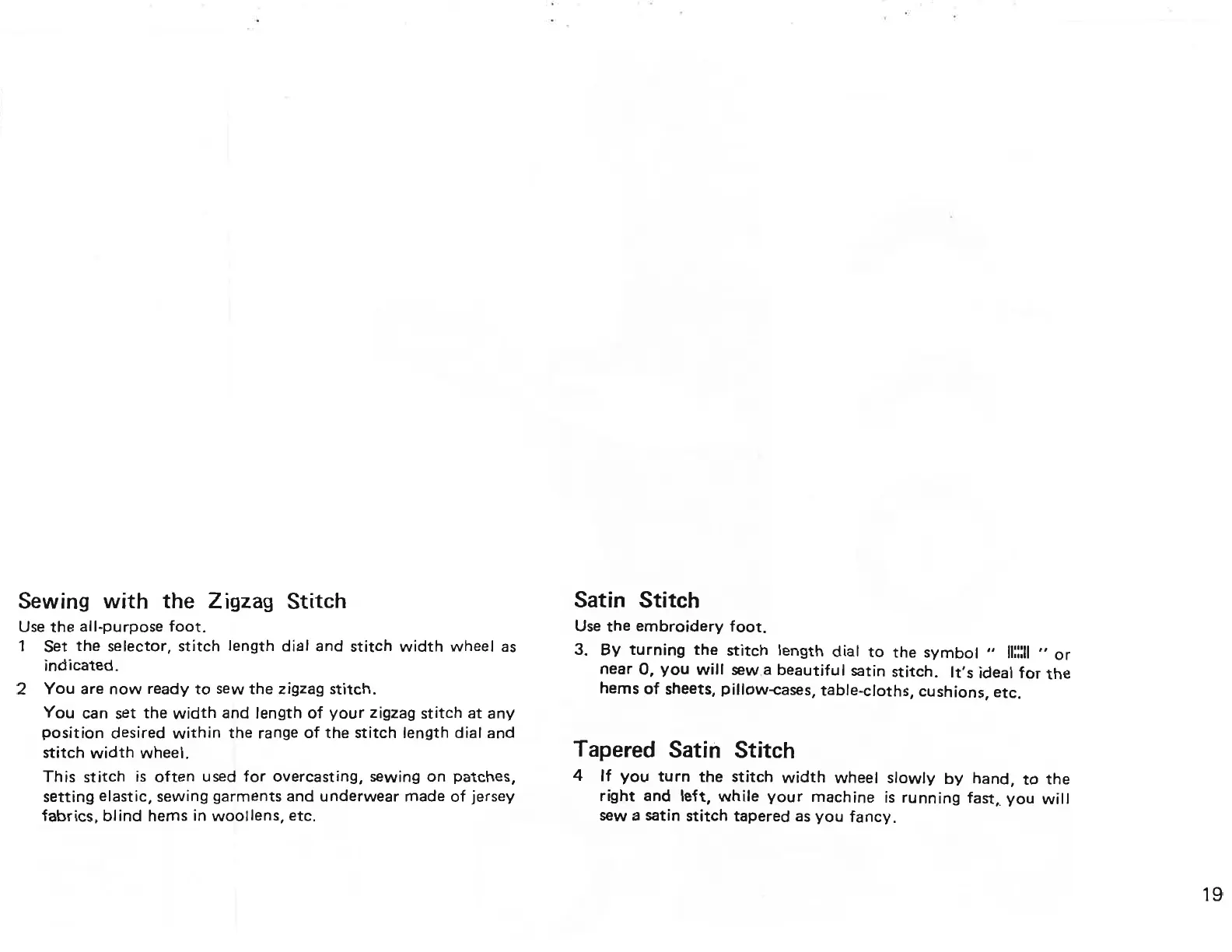 ELNA 450 - Sewing with the Zigzag Stitch; Satin Stitch; Tapered Satin Stitch