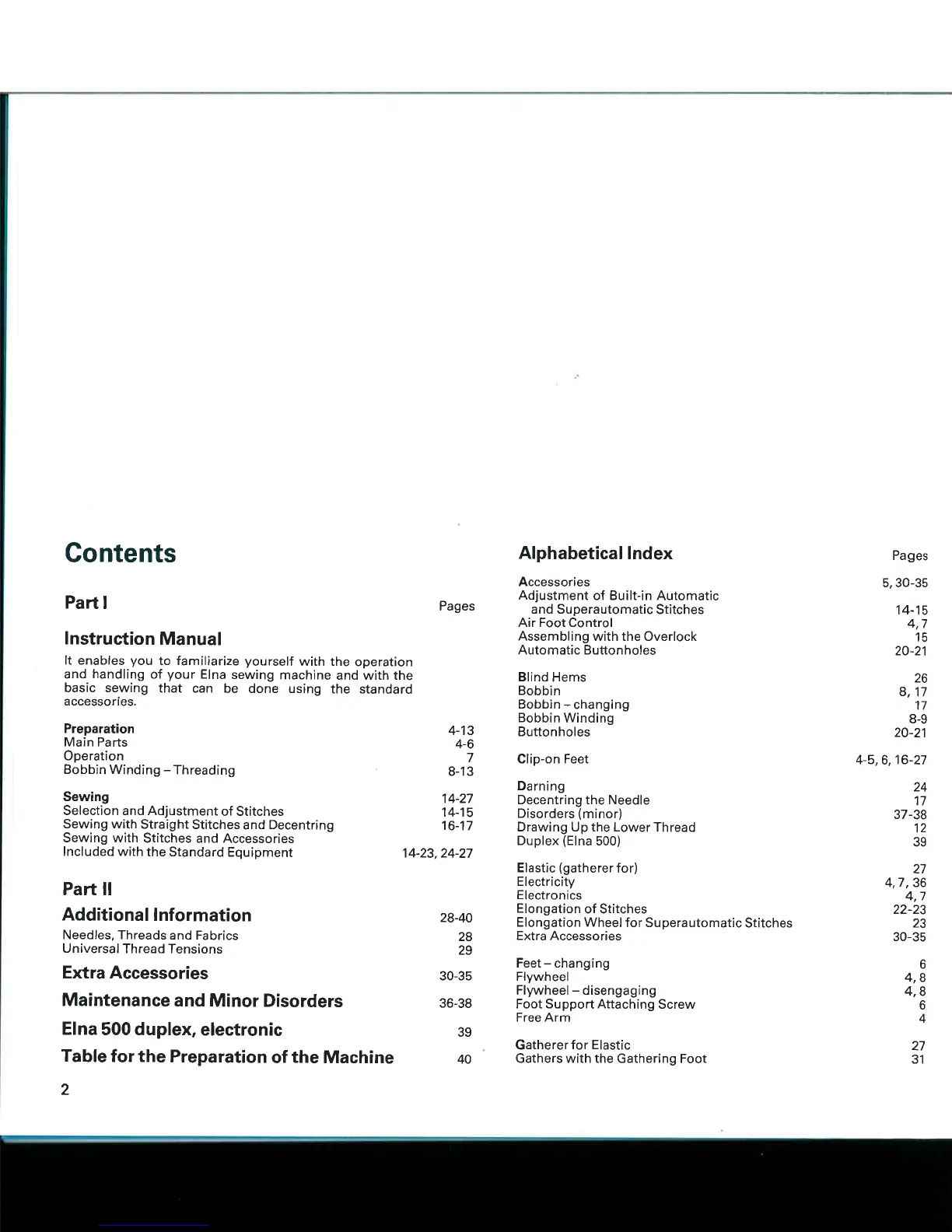 ELNA 500 ELECTRONIC - Contents