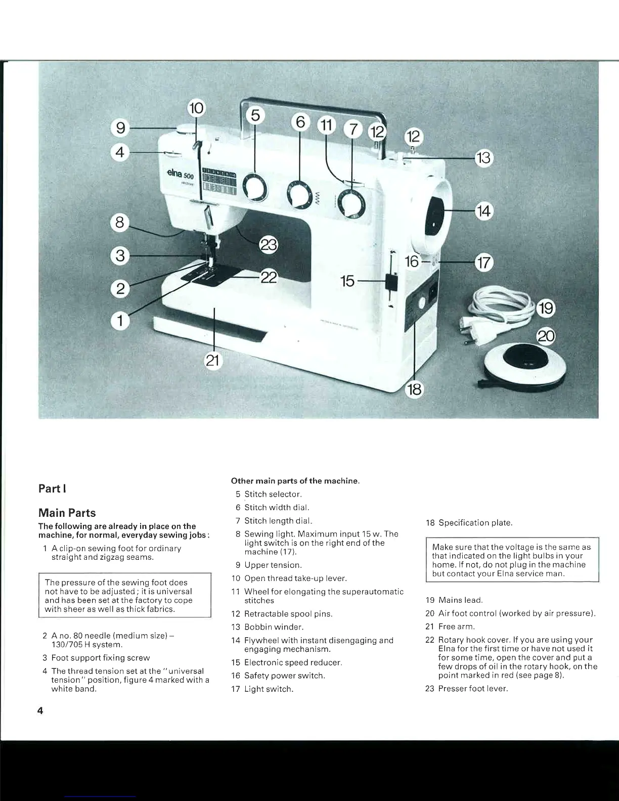 ELNA 500 ELECTRONIC - Main Parts