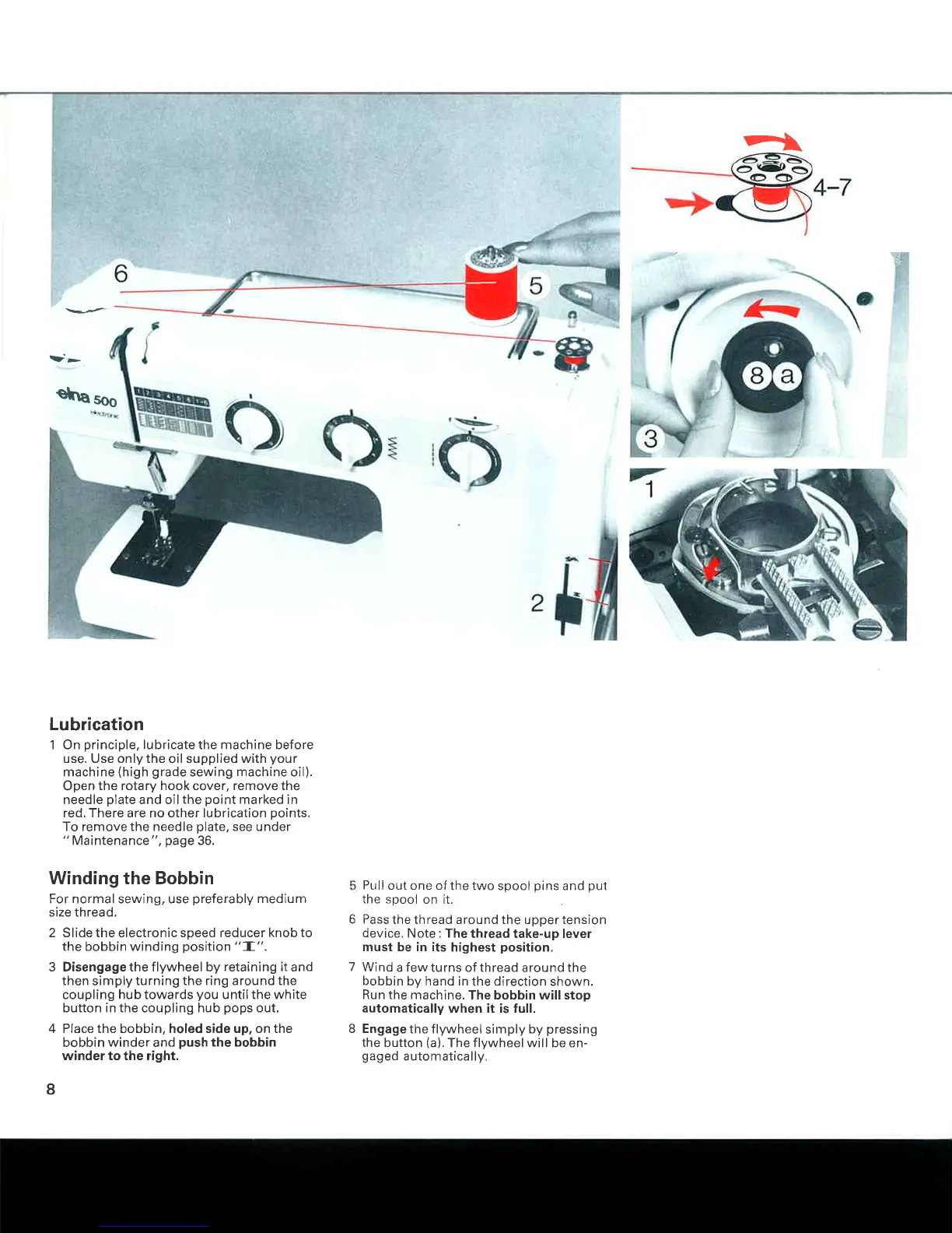 ELNA 500 ELECTRONIC - Lubrication; Winding the Bobbin