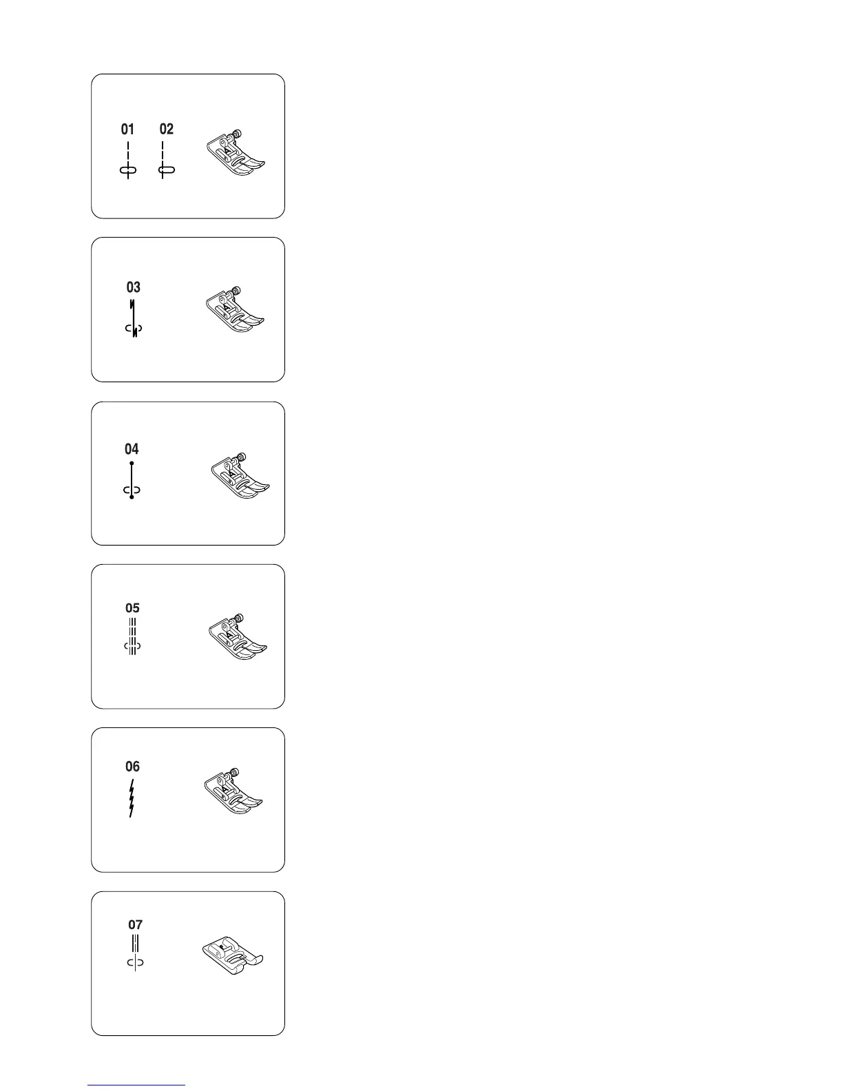 #01, #02 Straight stitch:Zigzag foot A