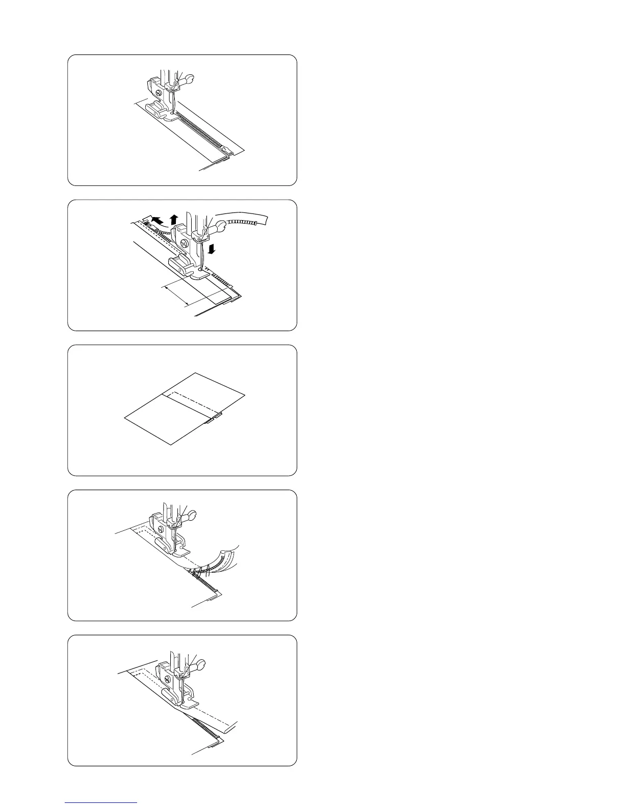 on the zipper tape. Lower the needle slightly into