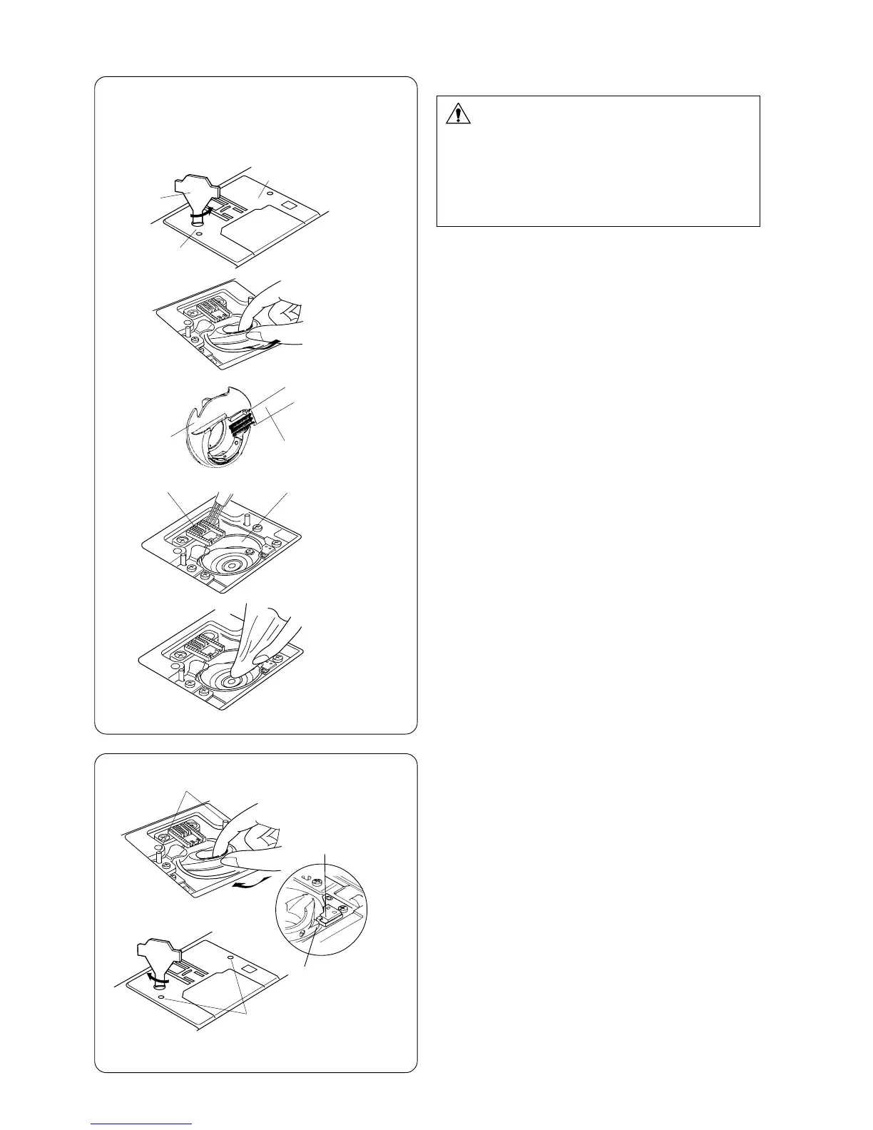 v Clean the feed dog y and hook race u with the