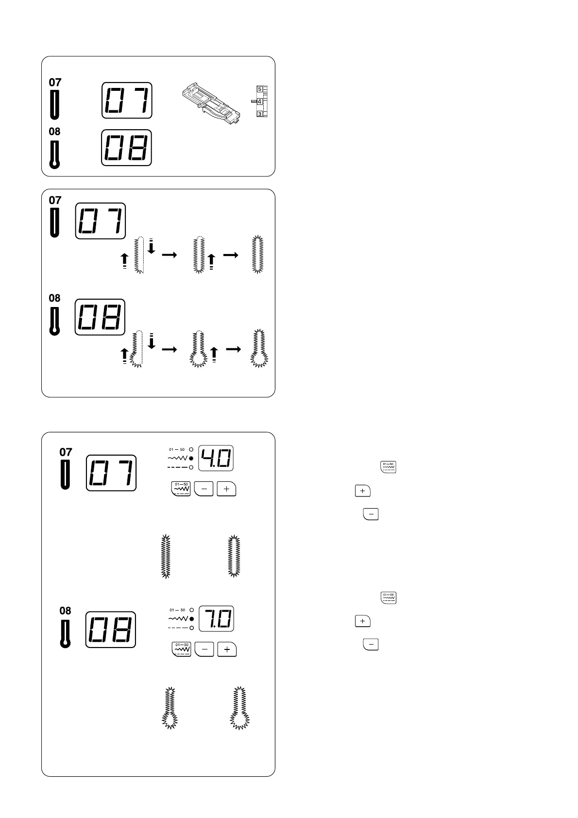 Press the plus key to increase the buttonhole