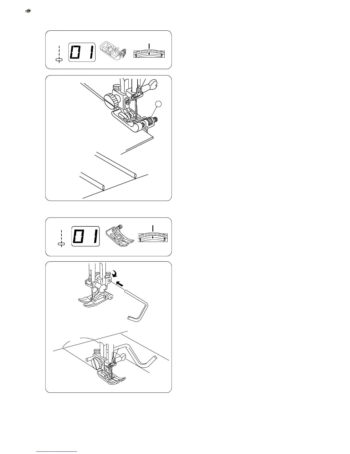 tighten the screw. Sew; the quilt guide will lie over