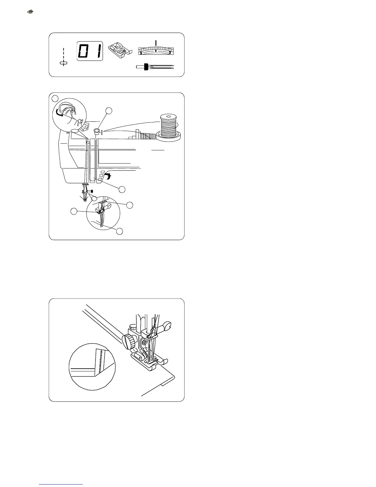 Turn off the power switch and insert a twin needle.