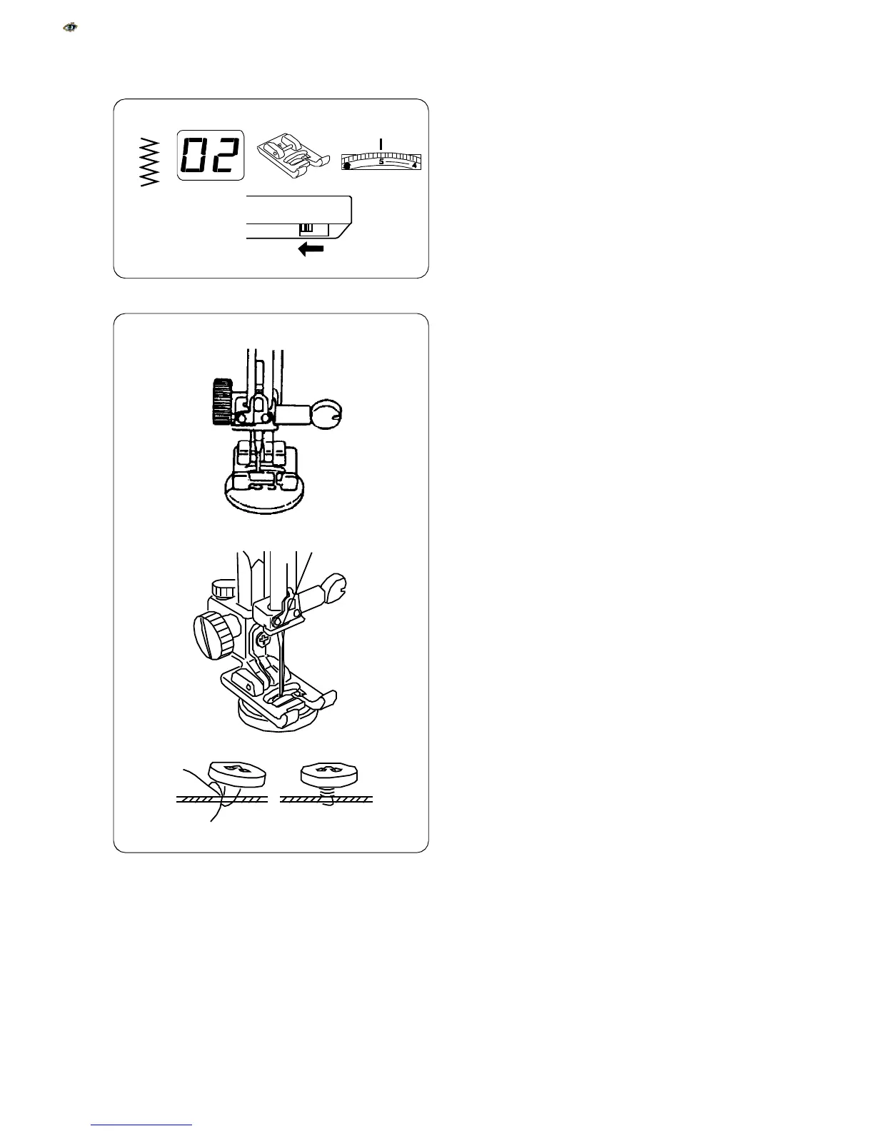 inside the left hole of the button. Lower the presser