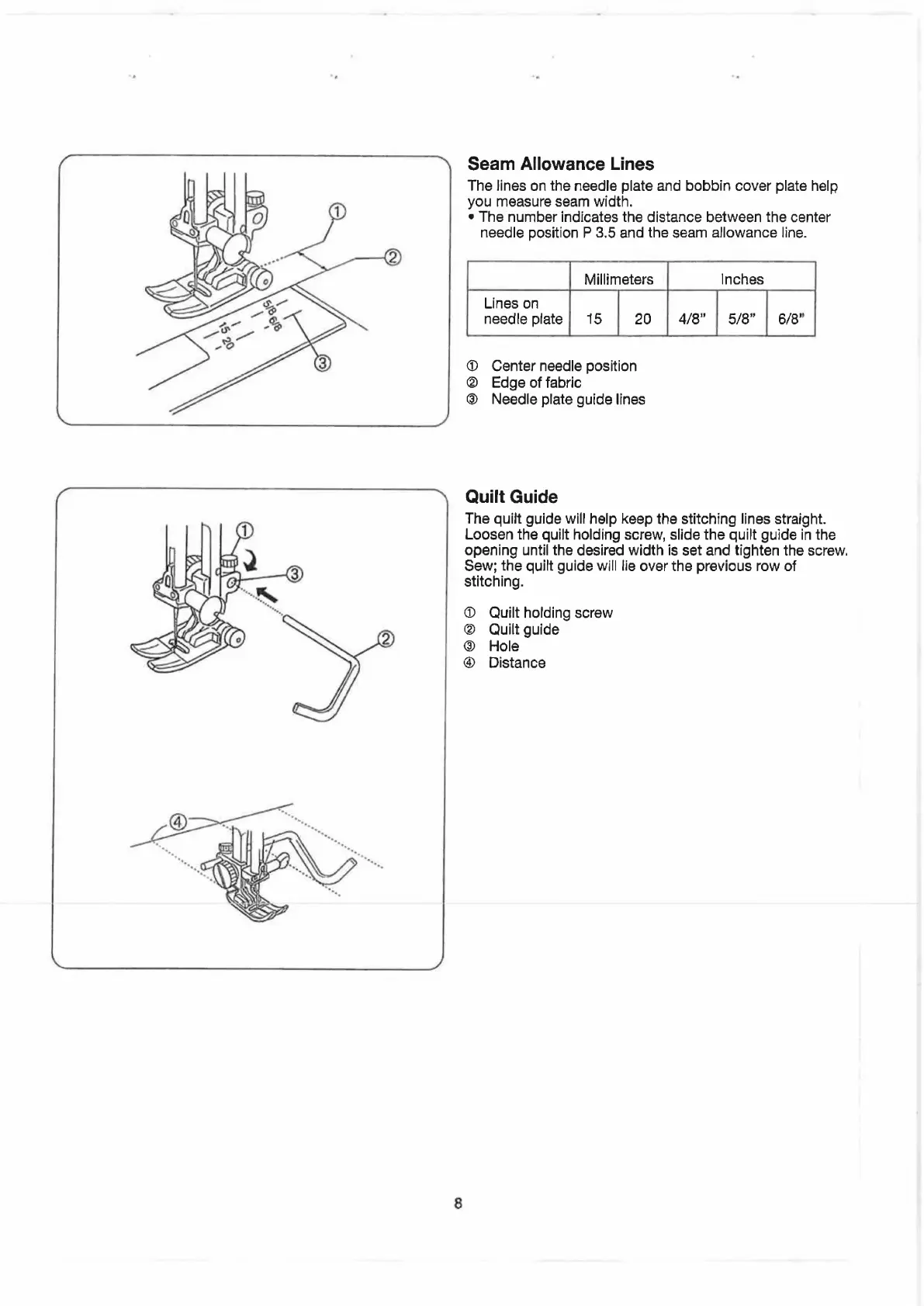 ELNA 6003 - Seam Allowance Lines; Quilt Guide