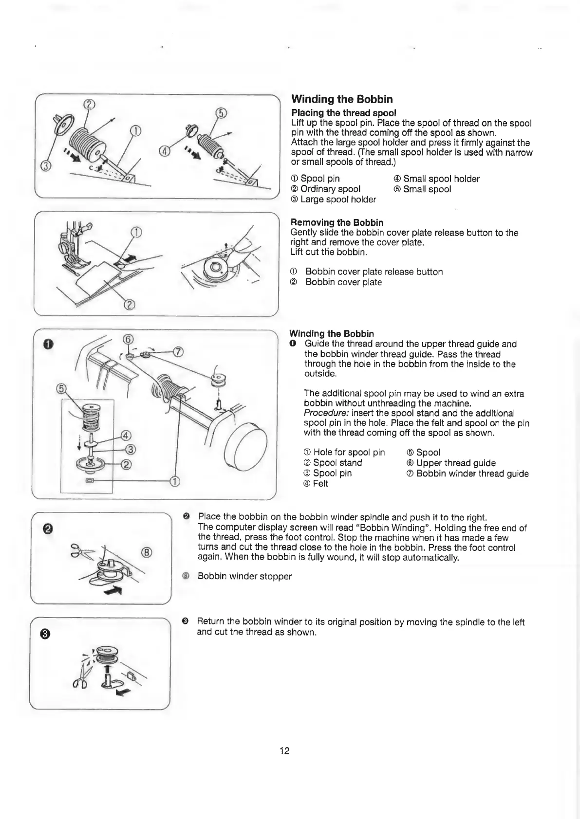 ELNA 6003 - Winding the Bobbin; Placing the thread spool; Removing the Bobbin