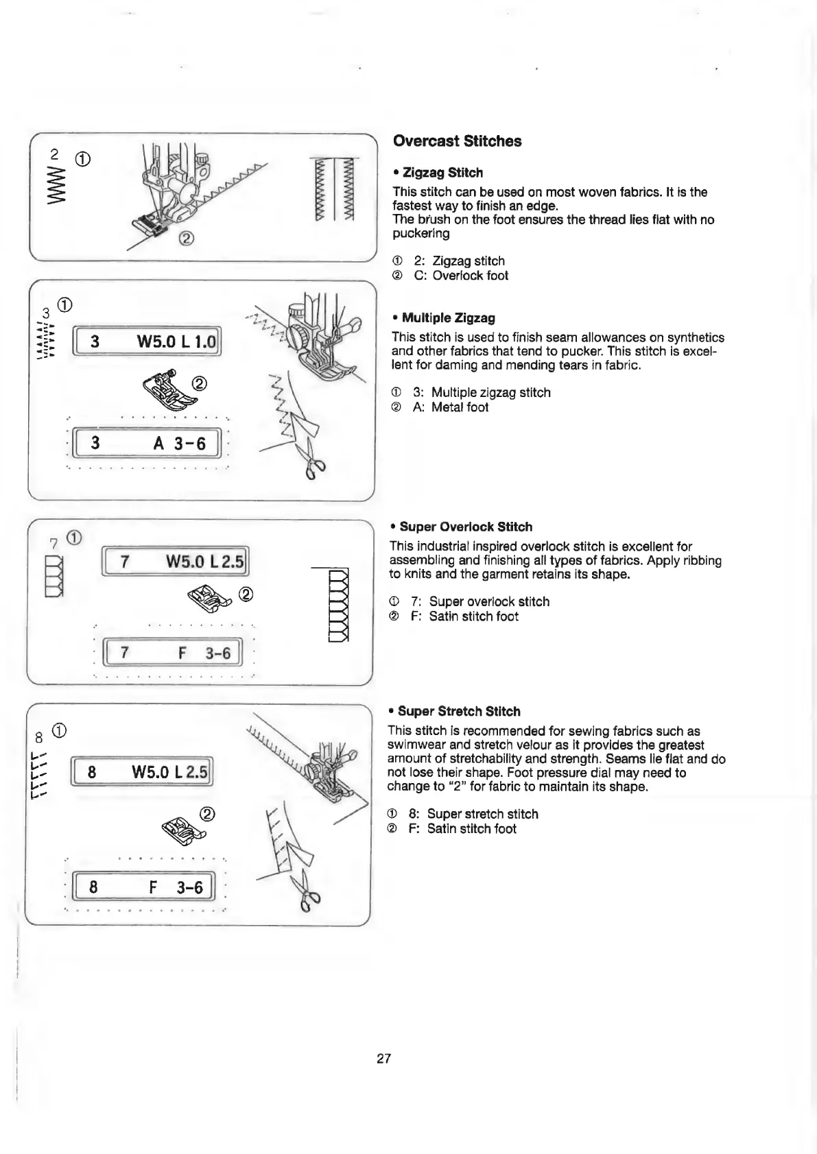 ELNA 6003 - Overcast Stitches; Zigzag Stitch; Multiple Zigzag; Super Overlock Stitch