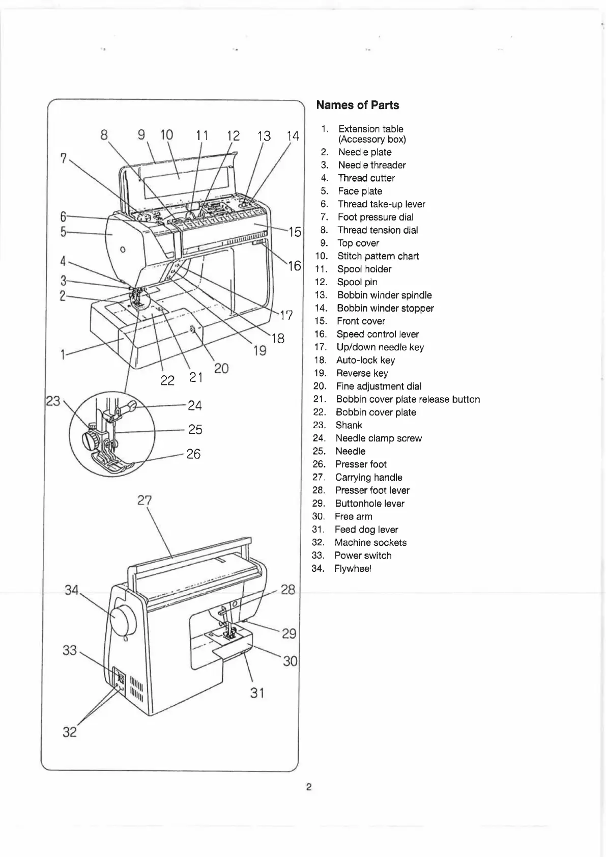 ELNA 6003 - Names of Parts