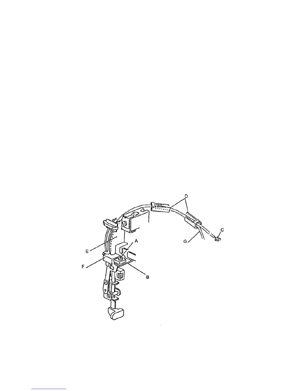 2. Remove set screw A and removes the buttonhole sensor F from sensor set plate B.