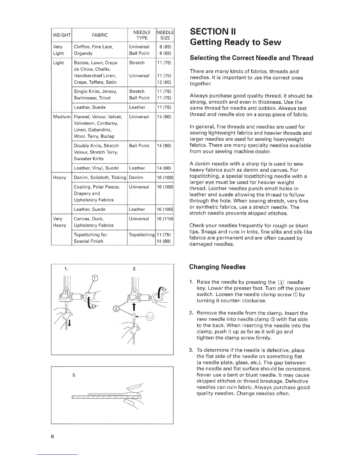 ELNA 6005 - Section II: Getting Ready to Sew; Needle and Thread Selection