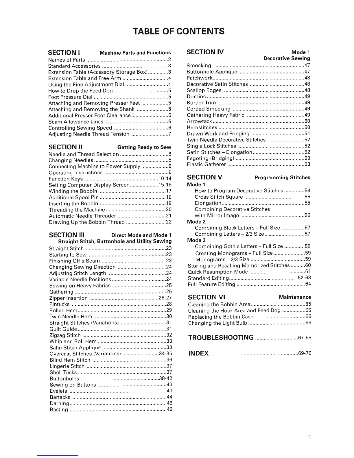 ELNA 6005 - Table of Contents