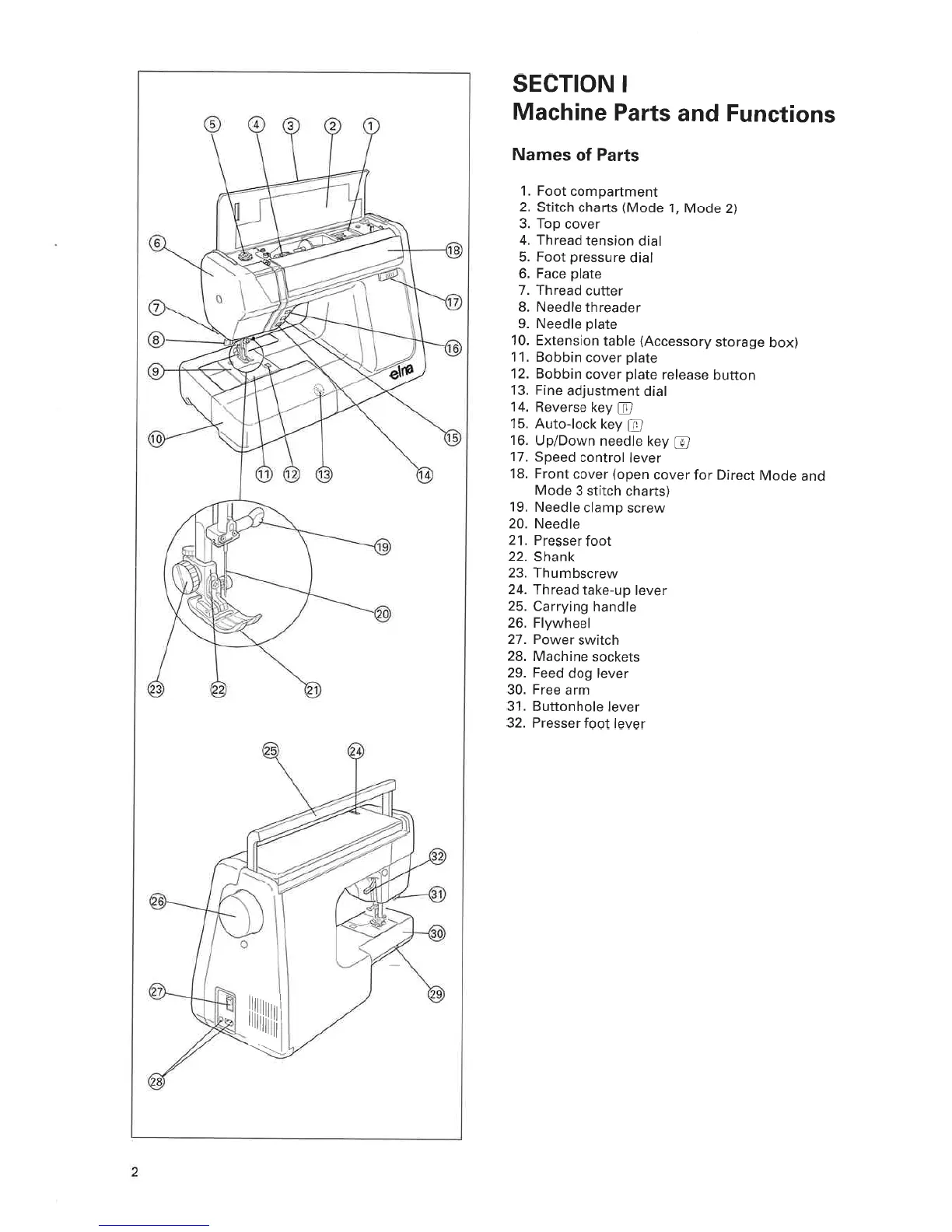ELNA 6005 - Section I: Machine Parts and Functions; Key Components and Identification