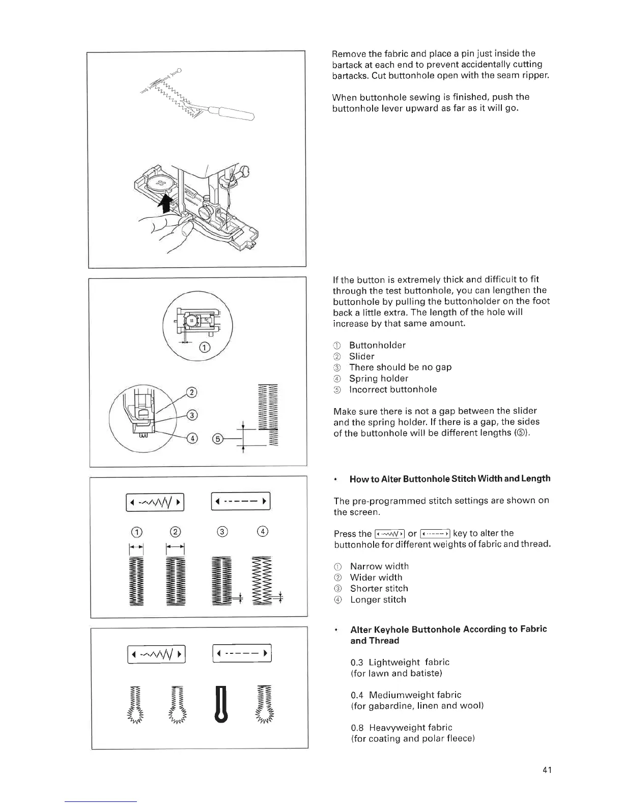 ELNA 6005 - How to Alter Buttonhole Stitch Width and Length; Alter Keyhole Buttonhole According to Fabric and Thread