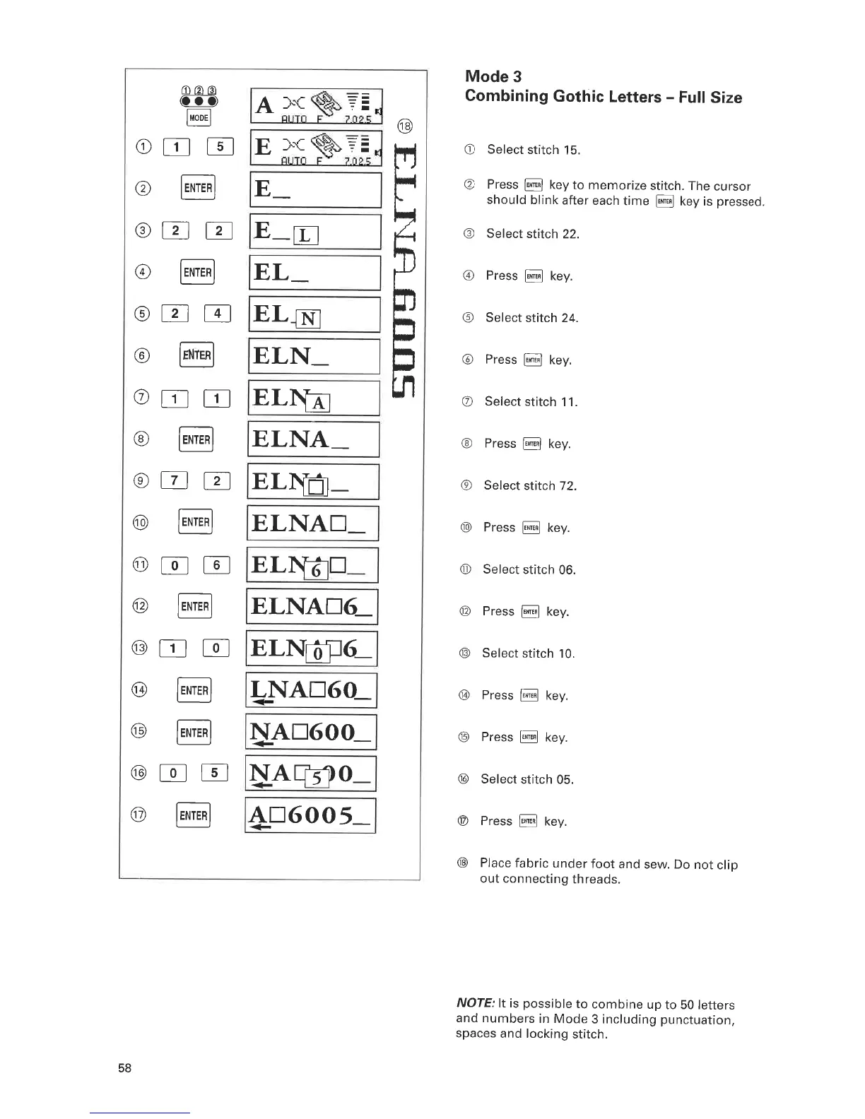 ELNA 6005 - Combining Gothic Letters: Full Size