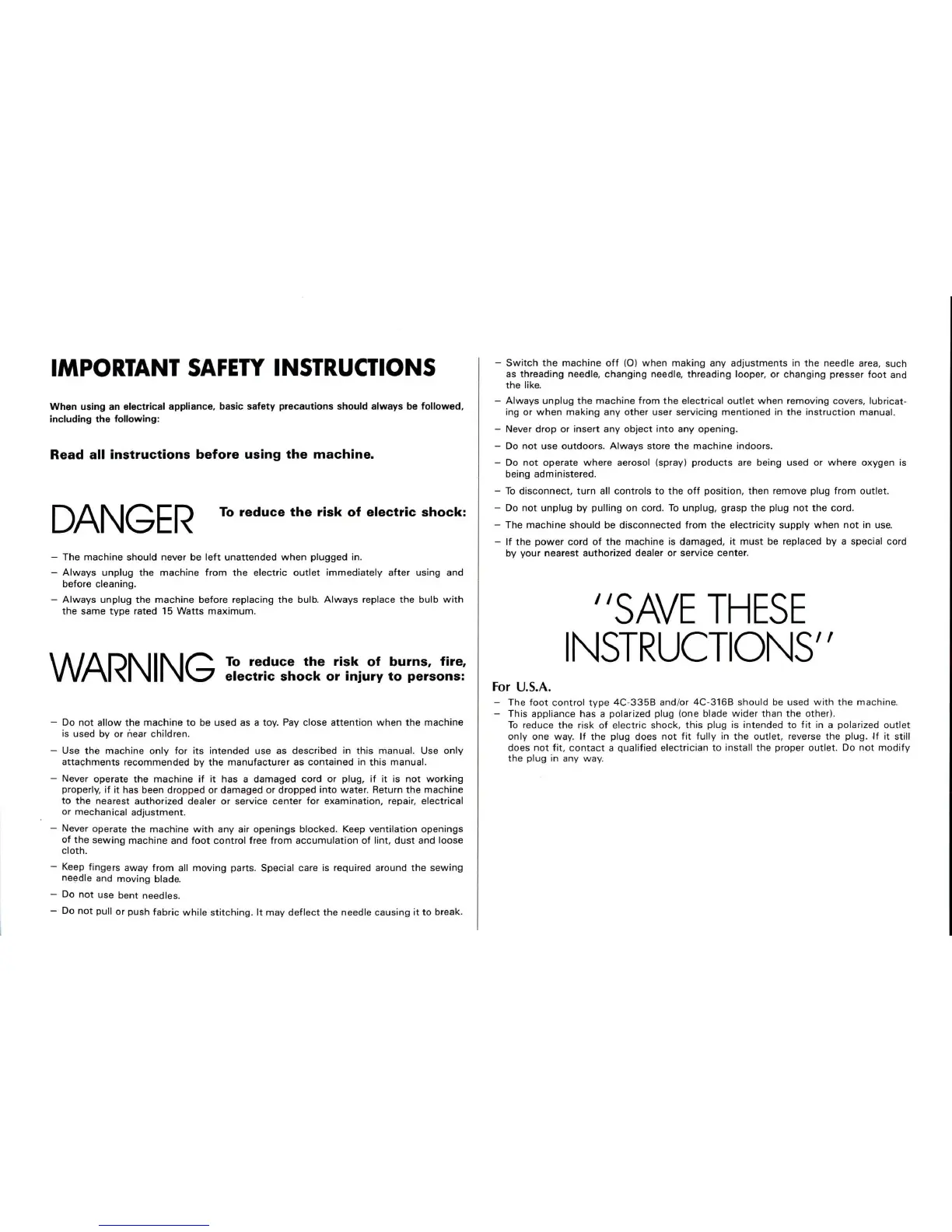 - The foot control type 4C-335B and/or 4C-316B should be used with the machine.