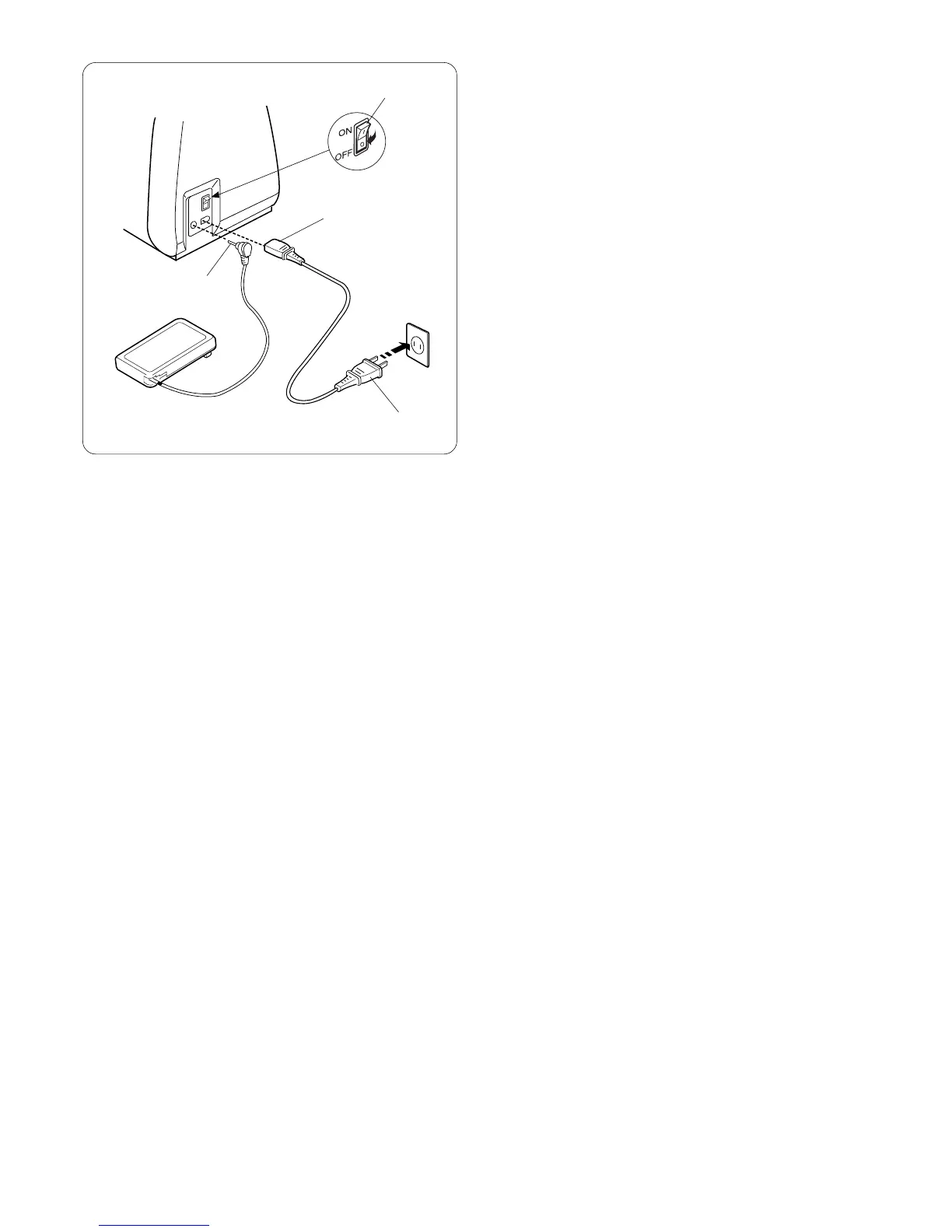 switch q. Insert the foot control plug w and machine