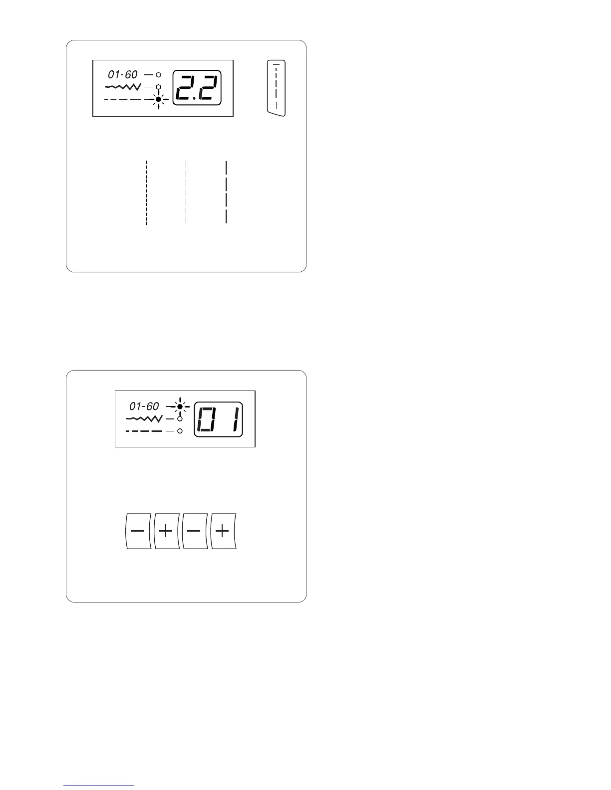 To increase stitch length, press “+” side of key.