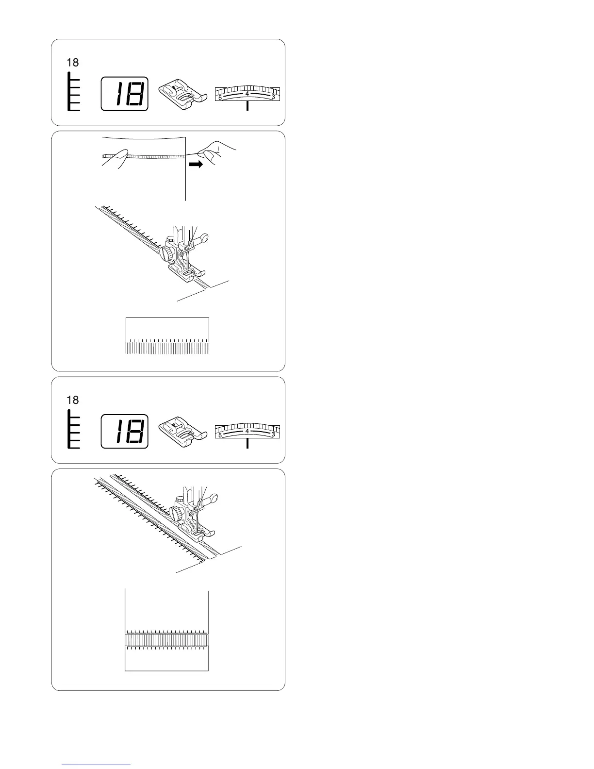 Sew down right side, guiding fabric so left hand stitches