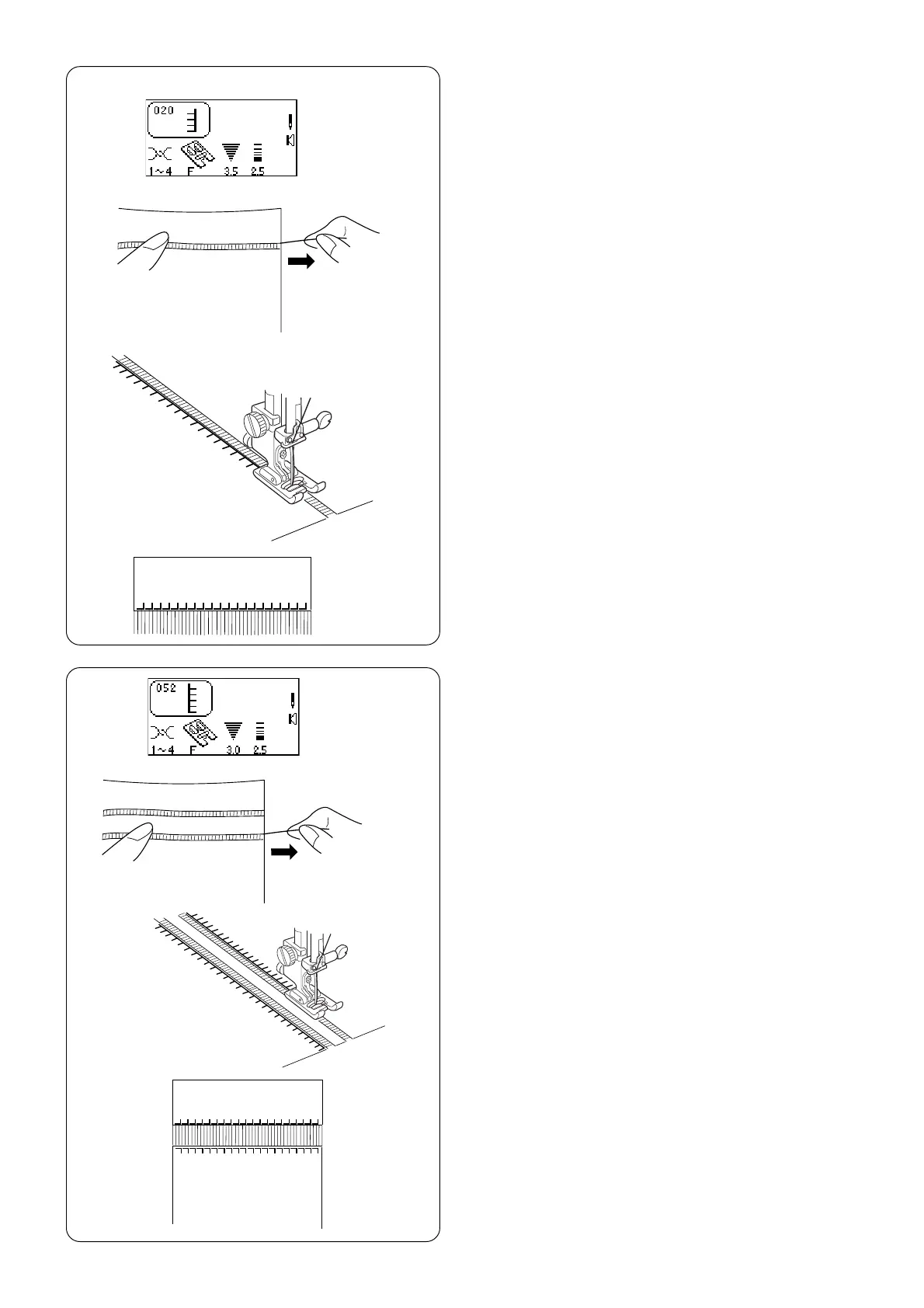 x Sew down right side, guiding fabric so left hand