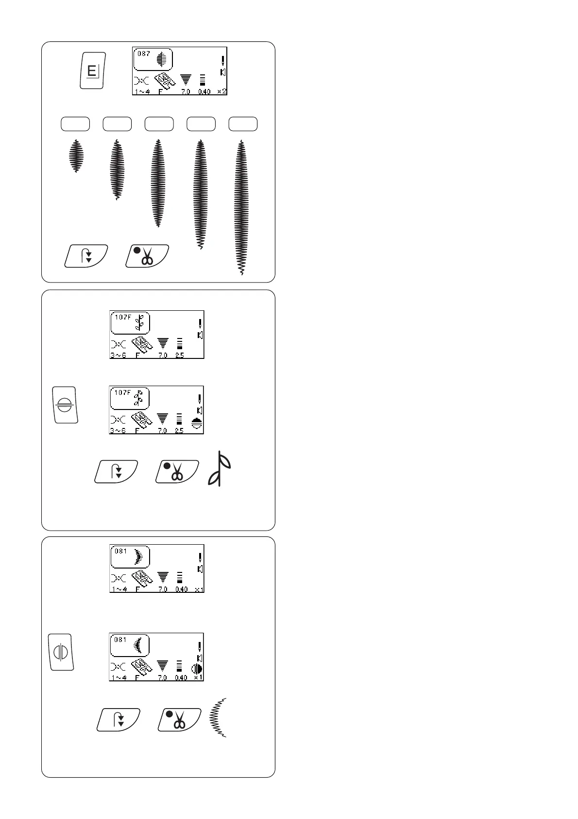 Satin stitches 081 - 089 can be lengthened up to