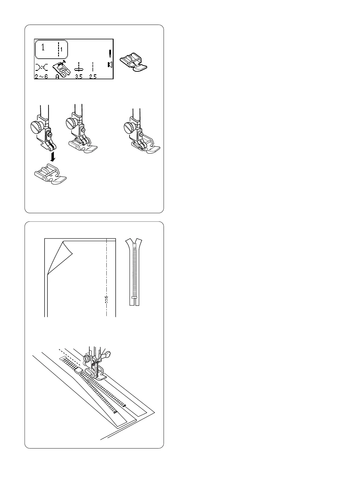 top is 1 cm (3/8˝) from fabric top edge. Attach foot