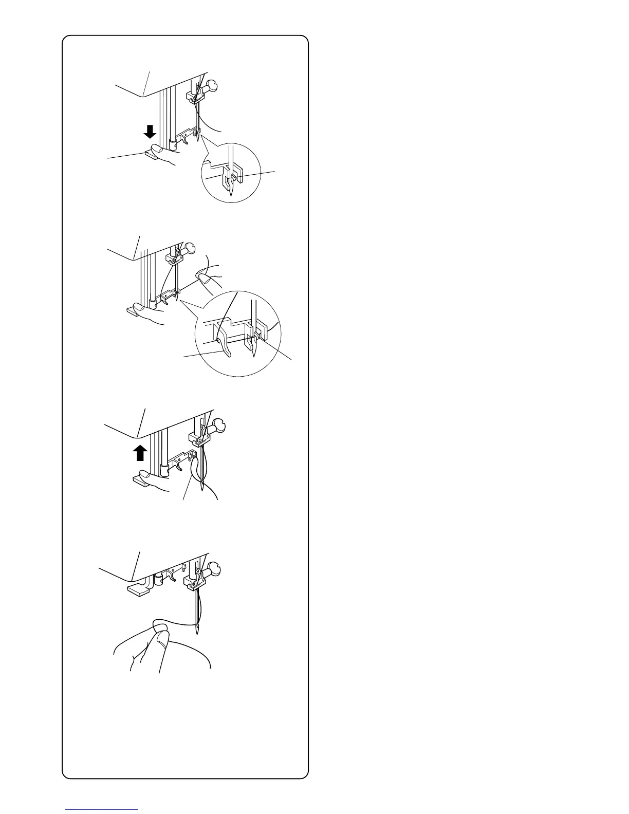 Pull down the needle threader lever q as far as it will go.