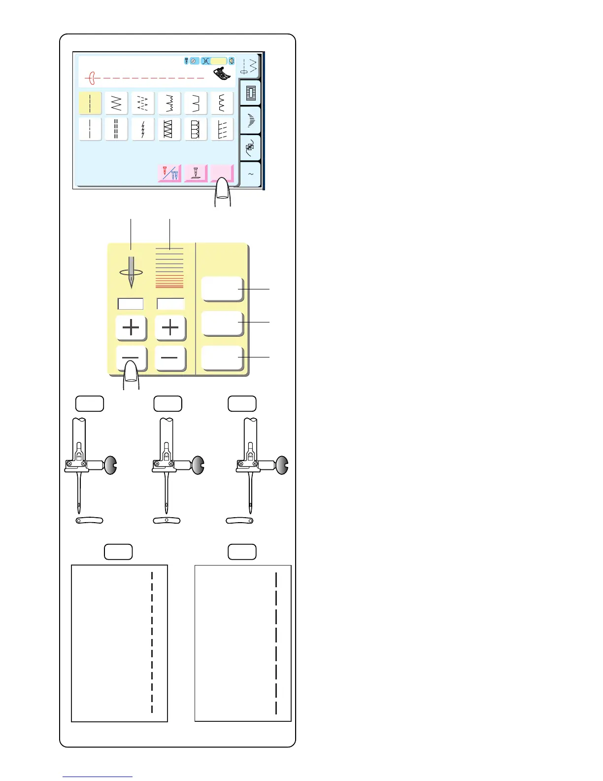 Touch the “–” key to shorten the stitch length.
