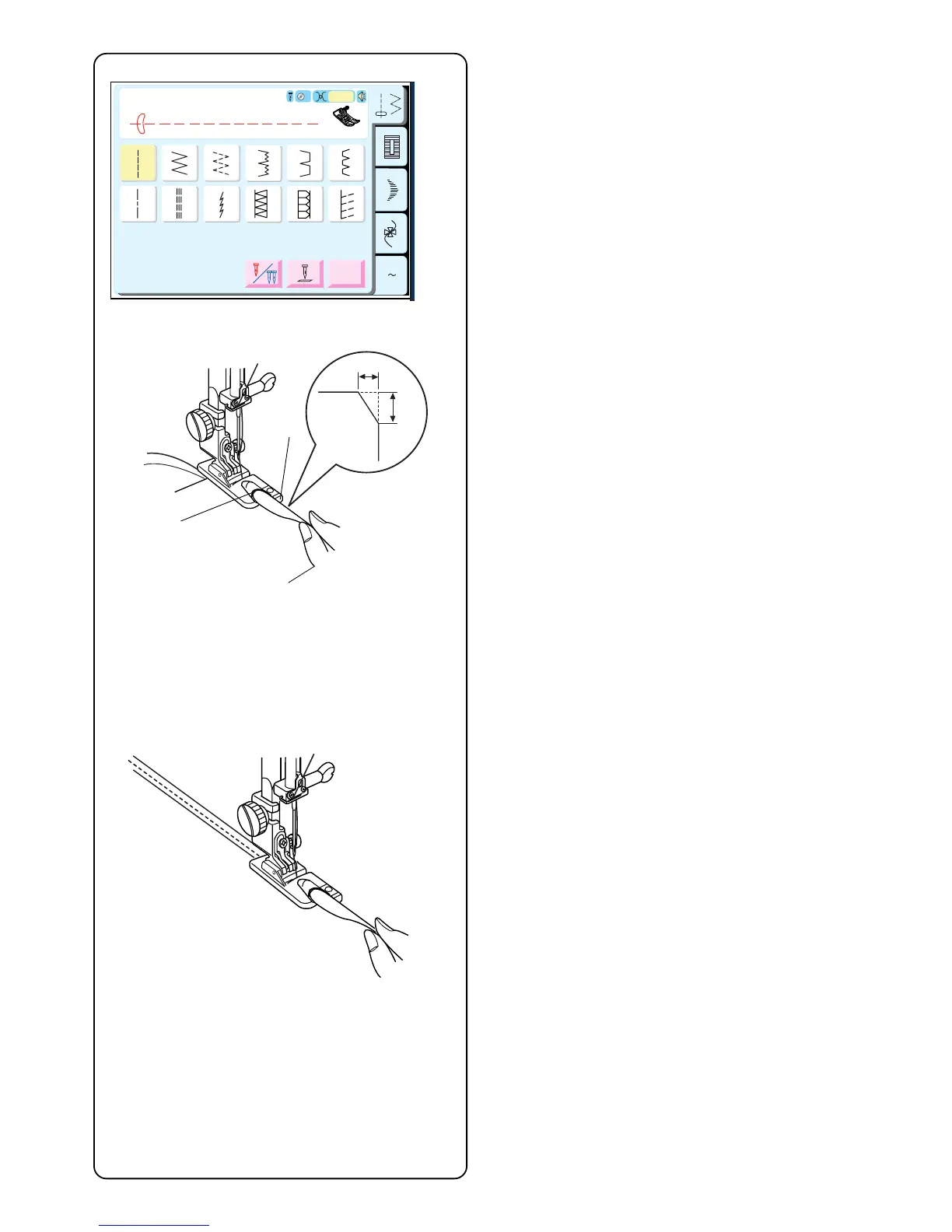 NOTE: Use zigzag with stitch width 1.0 – 2.0 for
