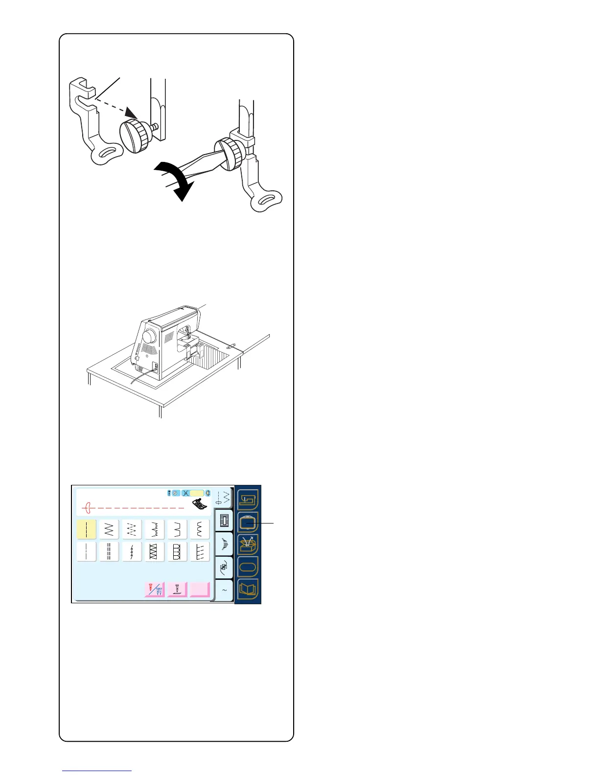 Attach embroidery foot “P”. Loosen thumbscrew and