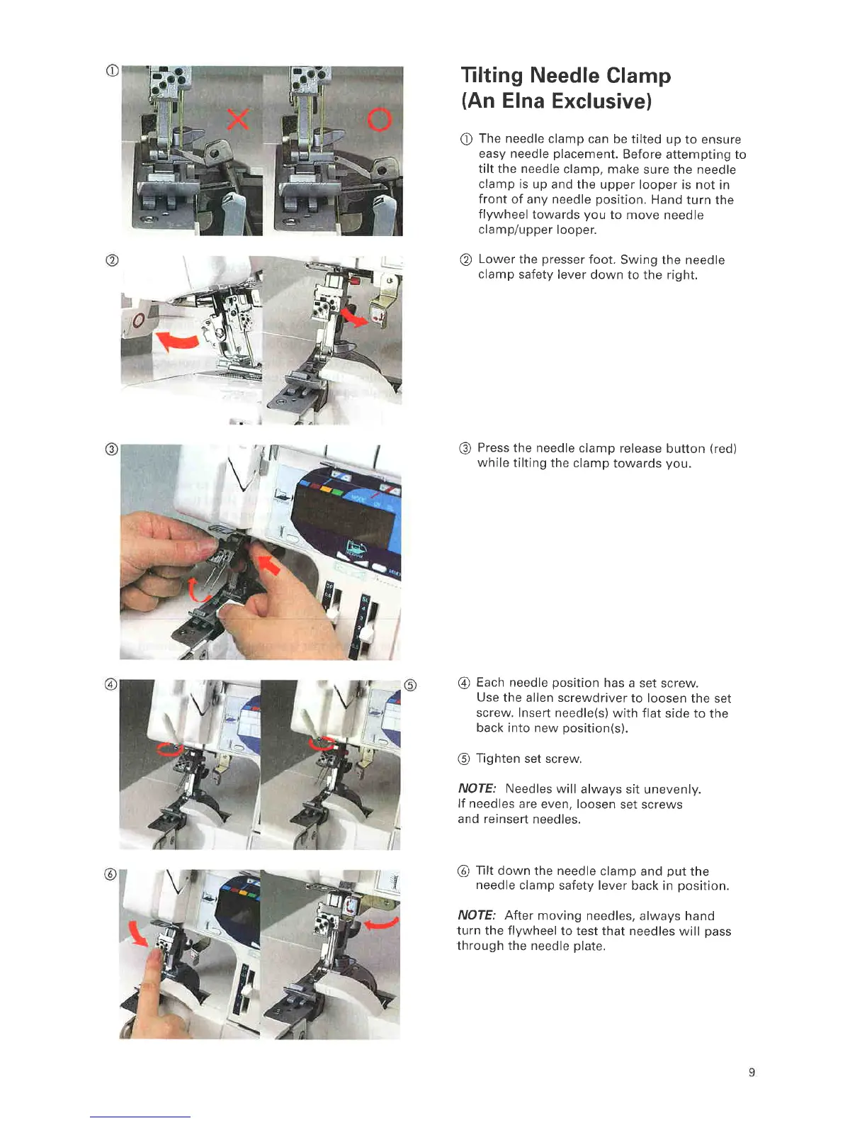 ELNA 945 - Tilting Needle Clamp; Operating the Needle Clamp