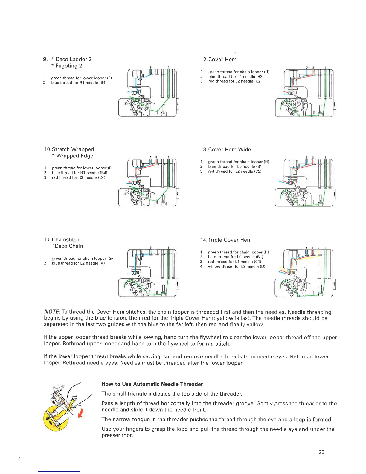 ELNA 945 - Stitch Threading Diagrams (9-14); Automatic Needle Threader Operation