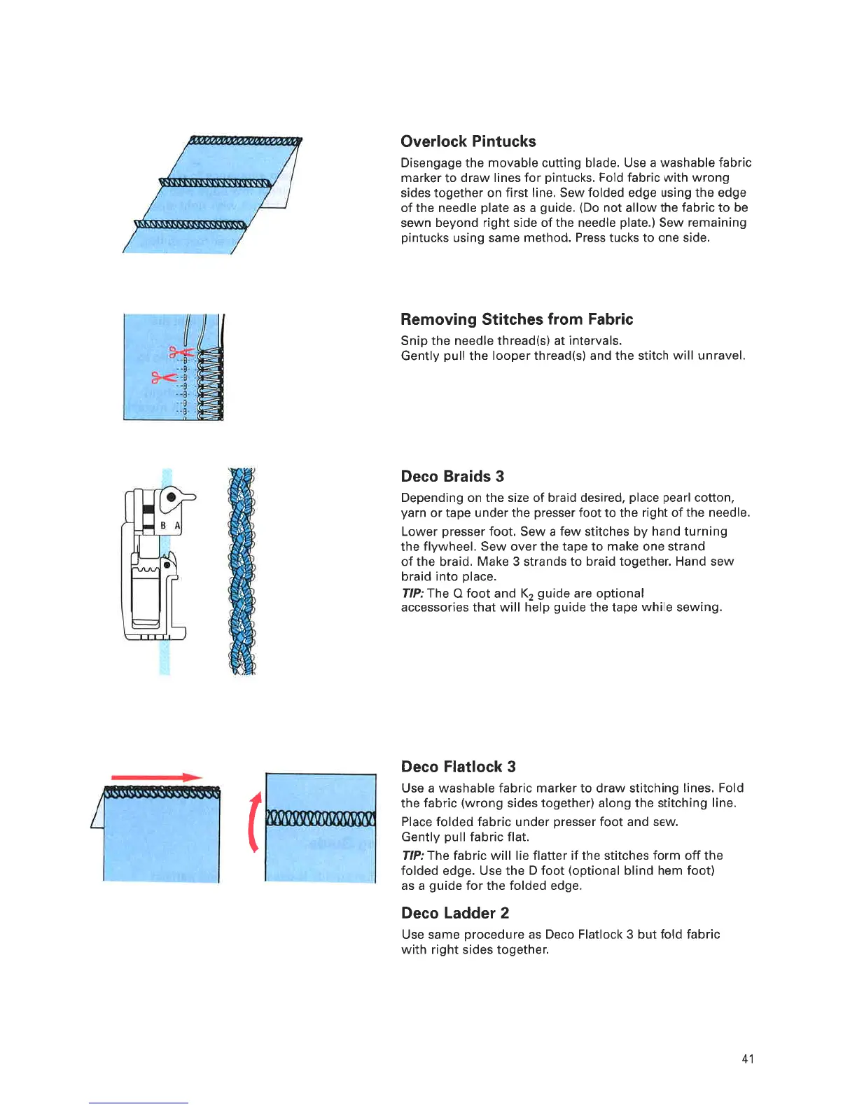 ELNA 945 - Overlock Pintucks; Removing Stitches from Fabric; Deco Braids 3 Technique; Deco Flatlock 3 Technique