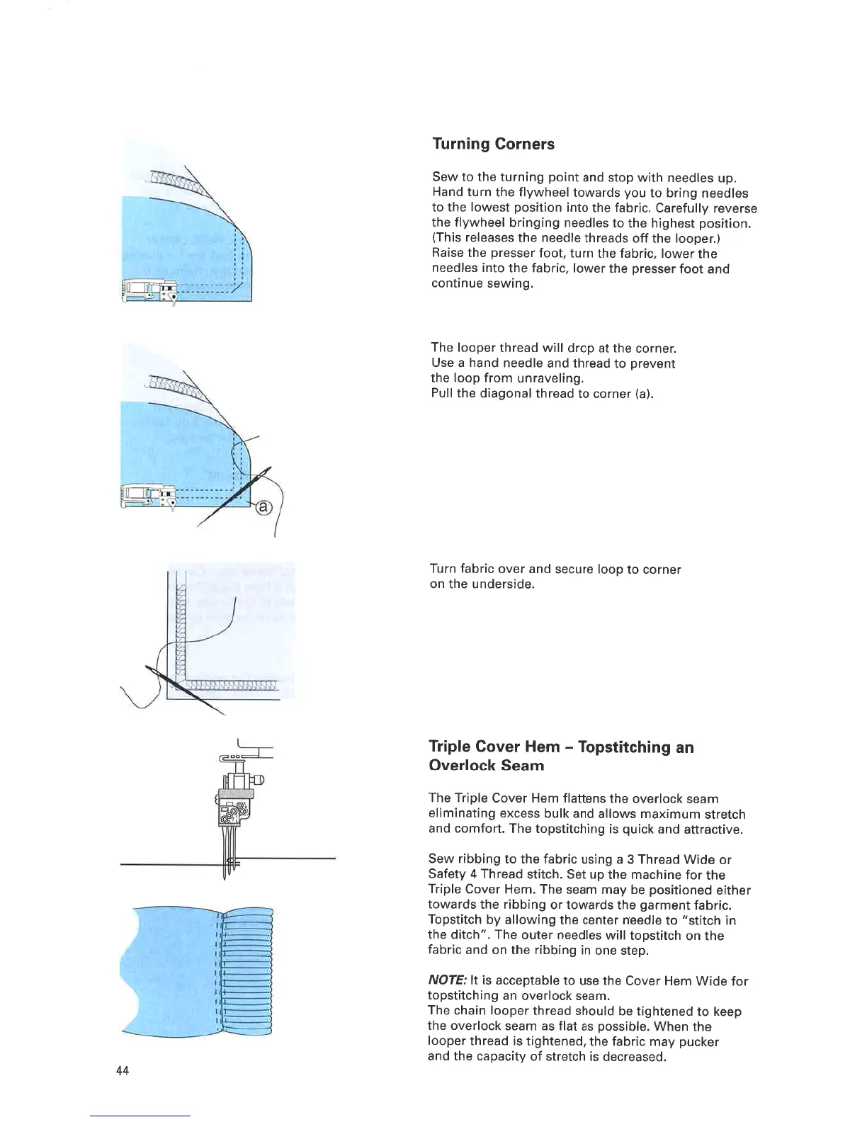 ELNA 945 - Turning Corners for Cover Hems; Triple Cover Hem - Topstitching an Overlock Seam