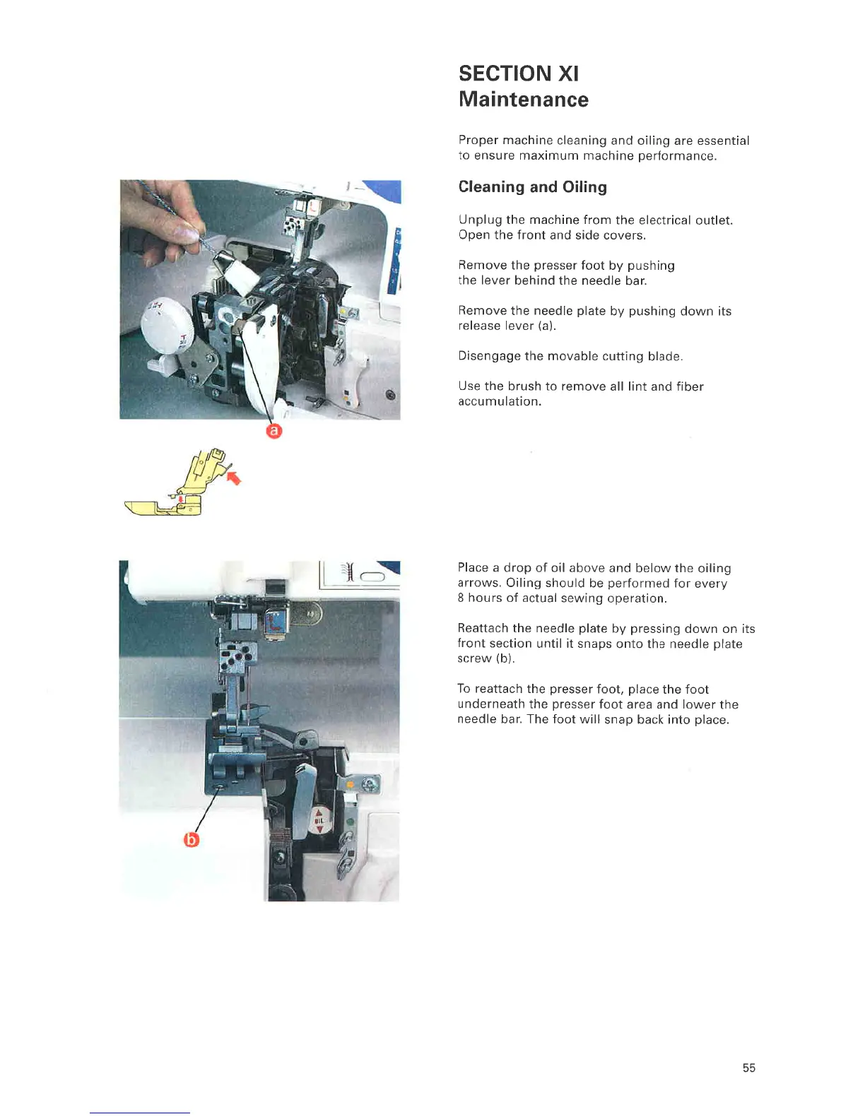 ELNA 945 - SECTION XI Maintenance; Cleaning and Oiling Procedures