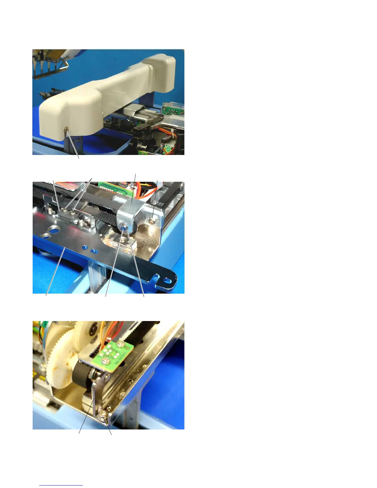 Remove the 2 setscrews (C) and the X-belt holder.