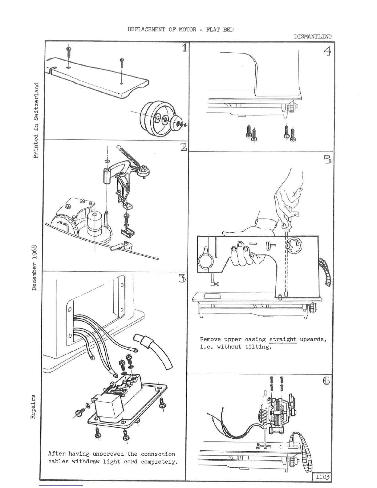 ELNA EC 11 - Motor Replacement - Flat Bed; Dismantling Procedure