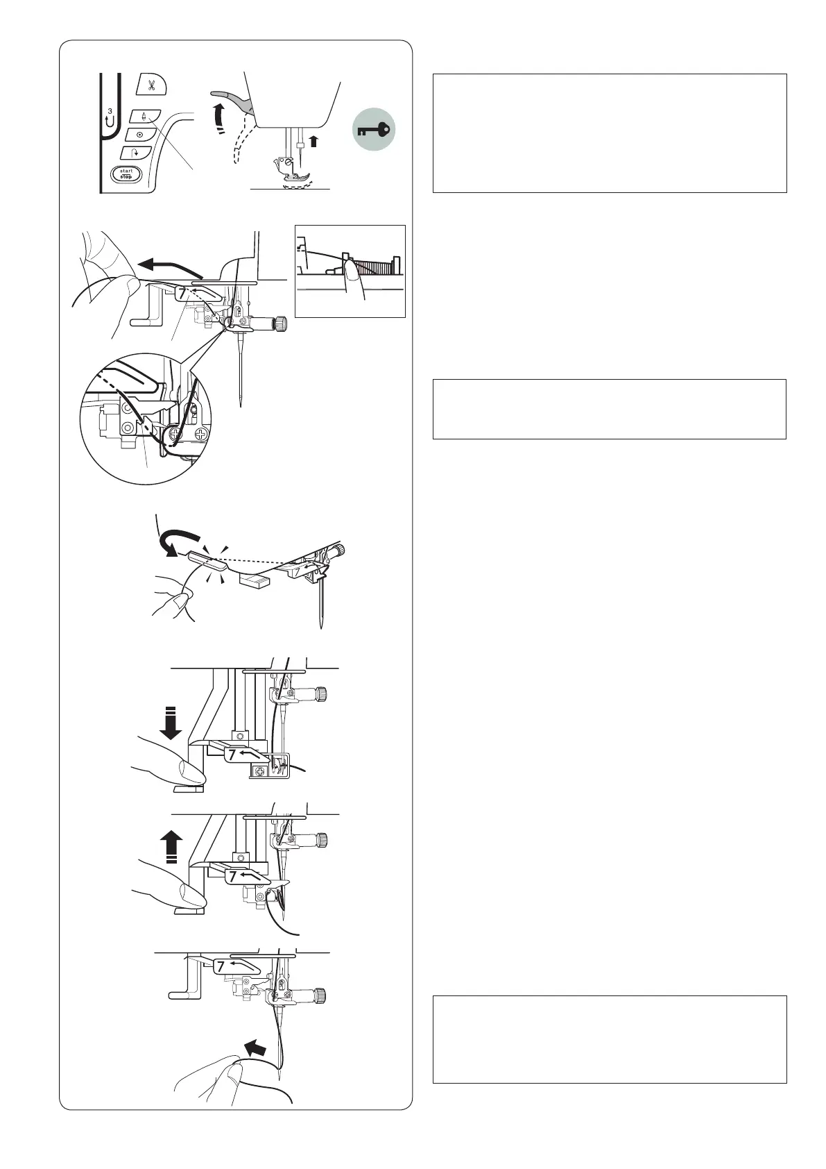 b Raise the threader slowly so a loop of the thread is