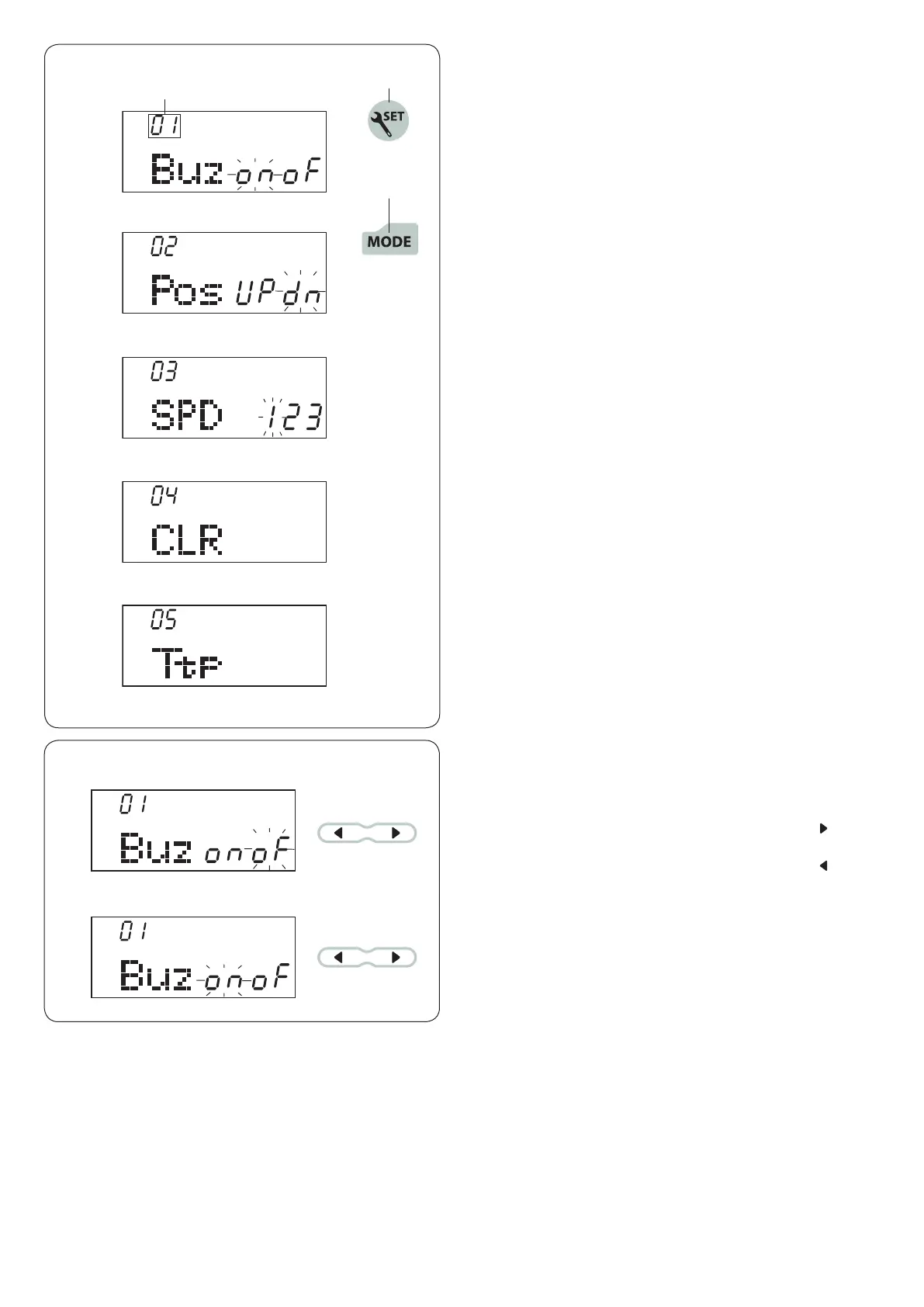 To turn on the buzzer sound, press the cursor key “ ”