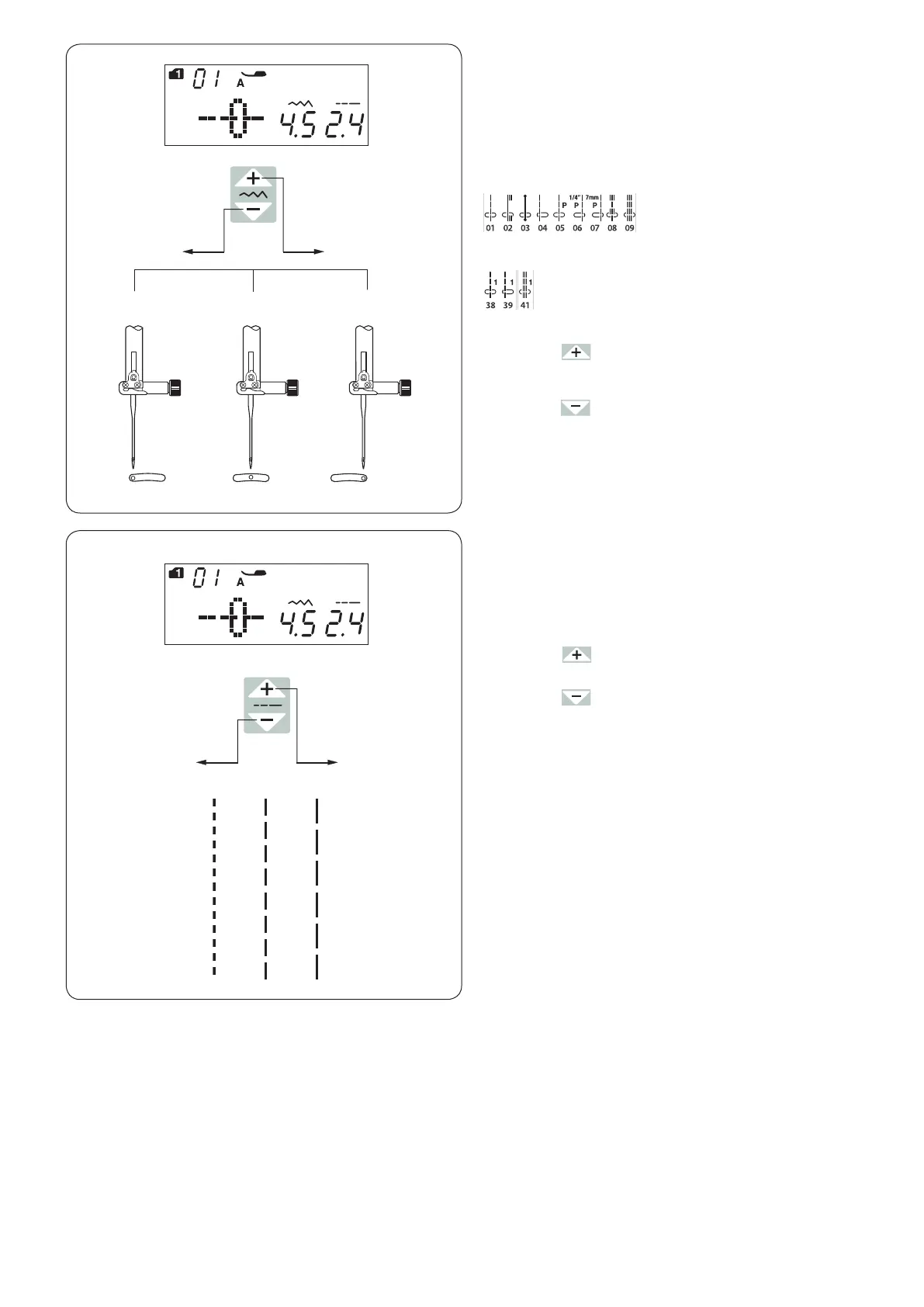 Press the “ ” sign on the stitch width adjusting key to
