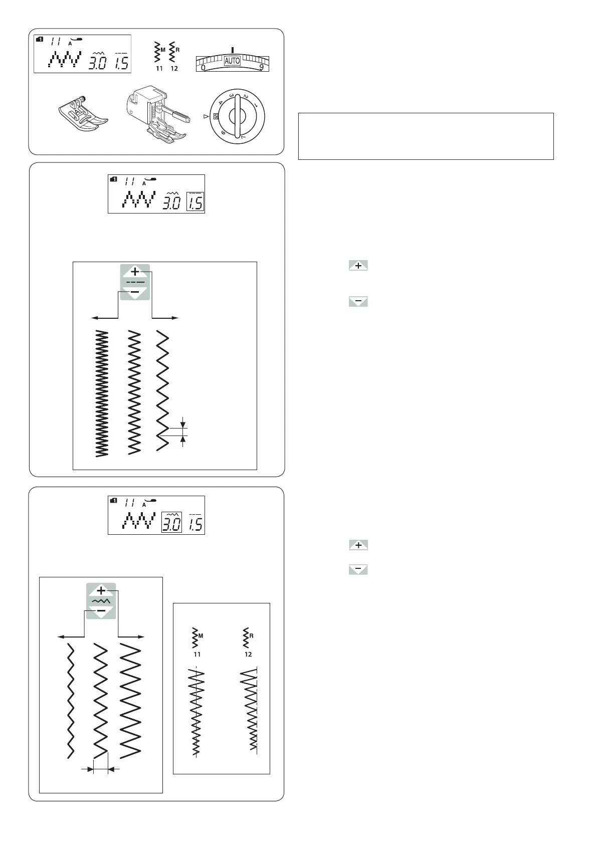 Press the “ ” sign on the stitch width adjusting key to