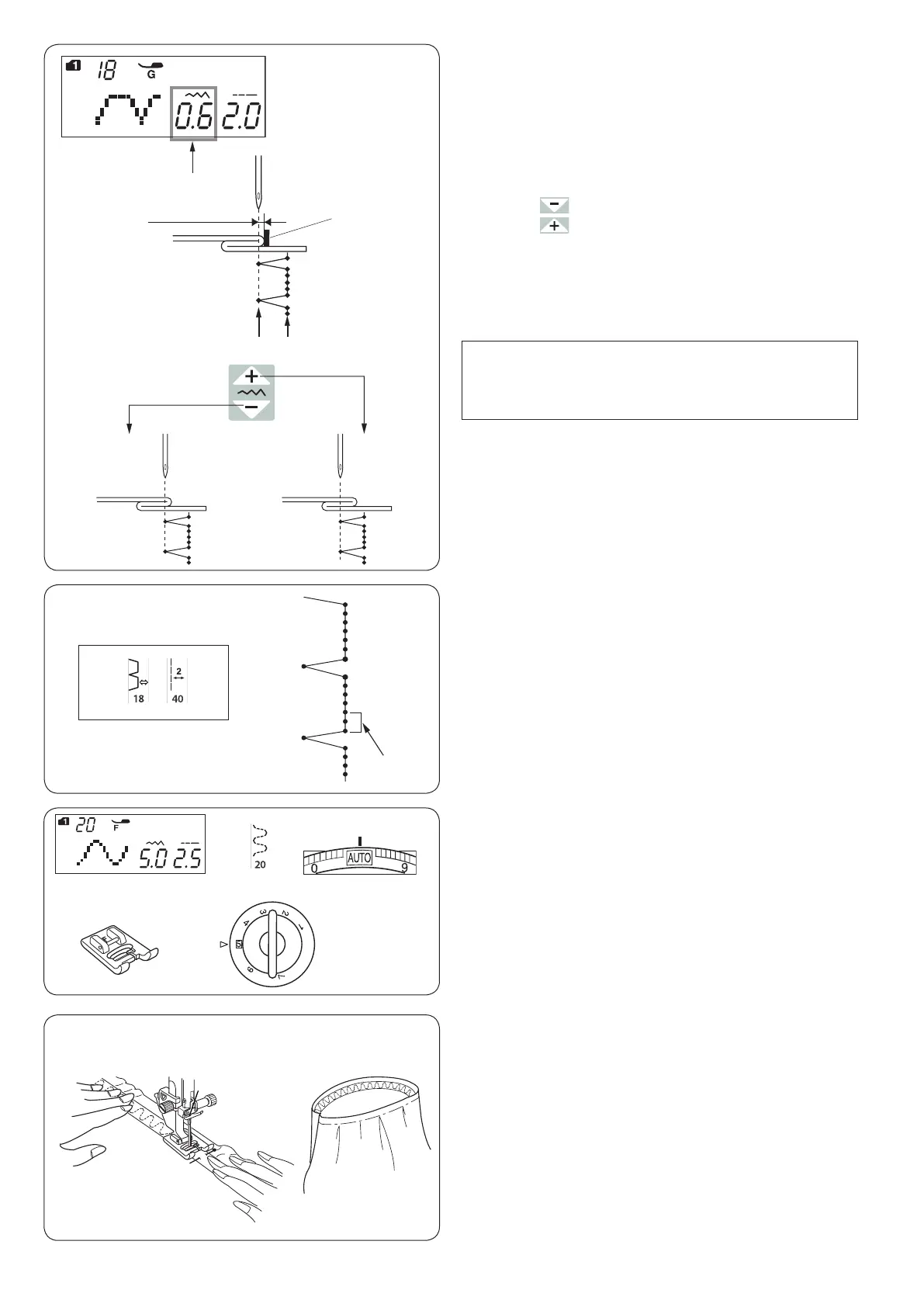 The stitch width of patterns 18 (mode 1) and 19 (mode